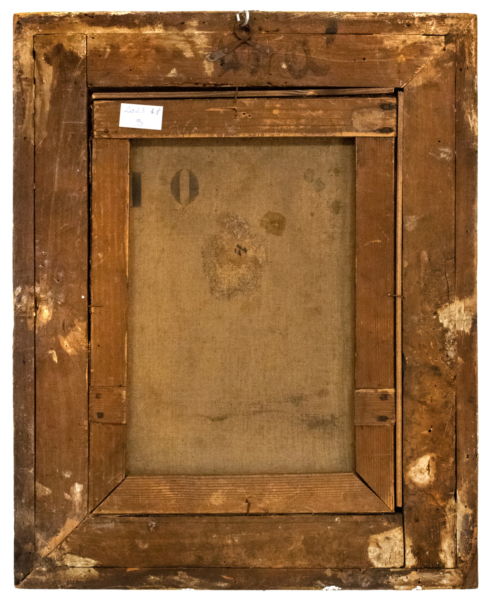 olio su tavola cm 36x23; con cornice cm 52x42 Cornice Salvator Rosa a tre ordini di intaglio