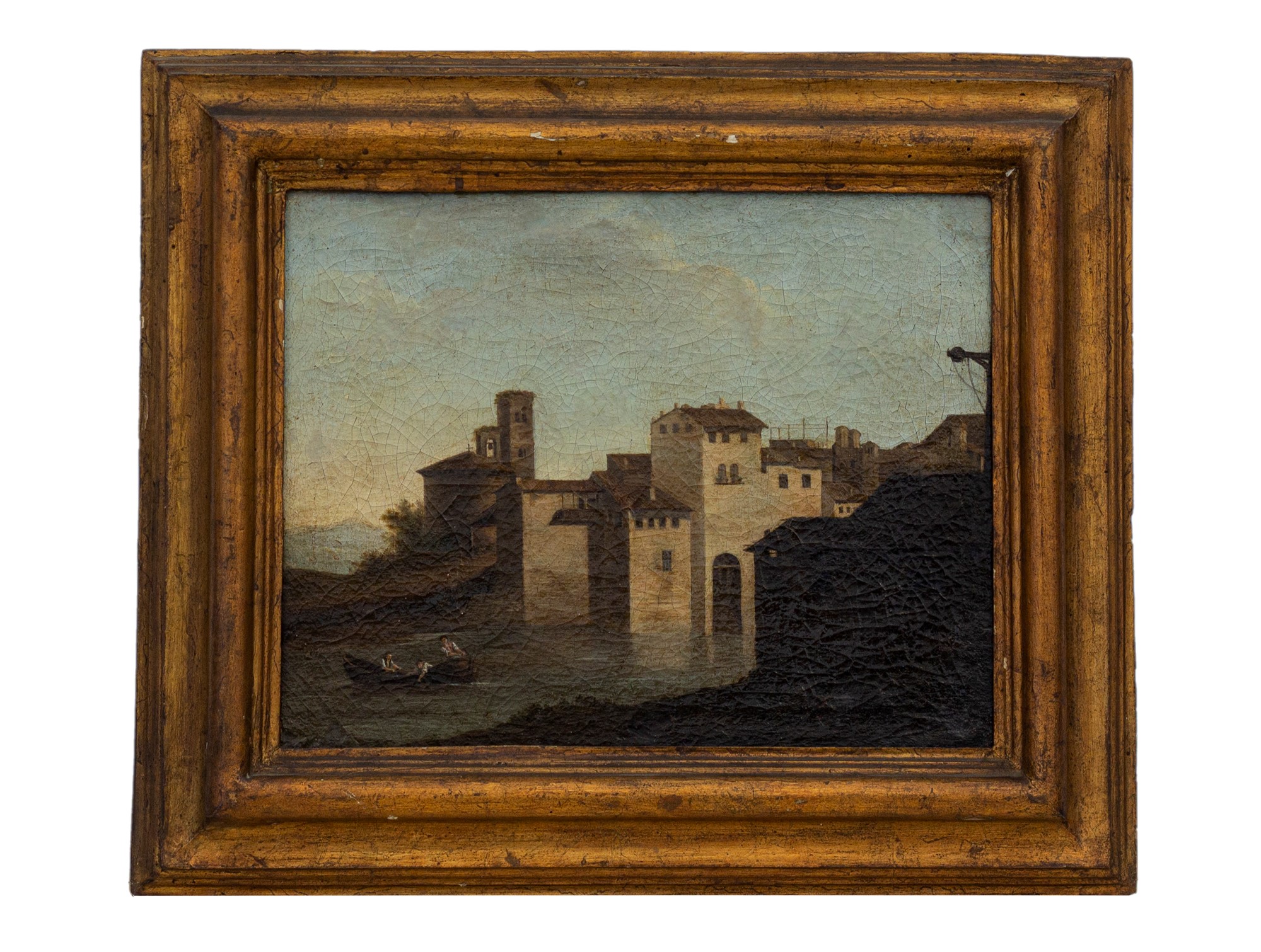 Pittore europeo del XIX secolo veduta fluviale pescatori