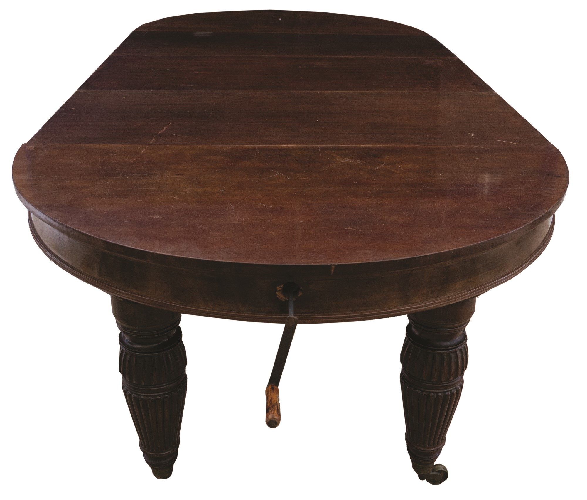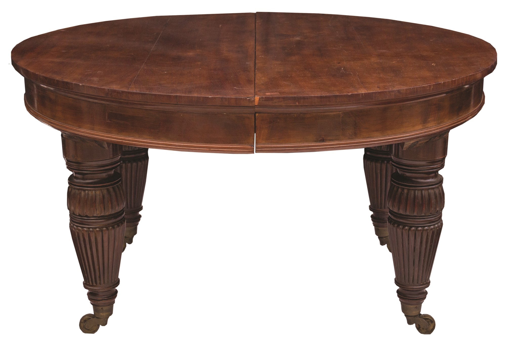 Grande tavolo tondo allungabile in mogano. Inghilterra, epoca Vittoriana.