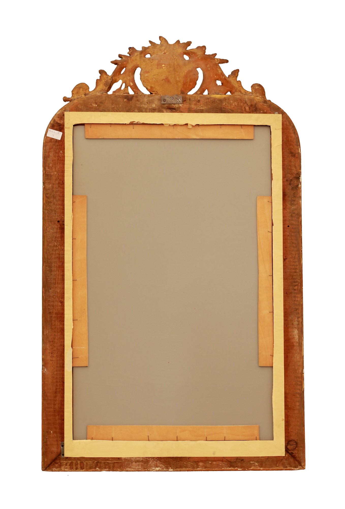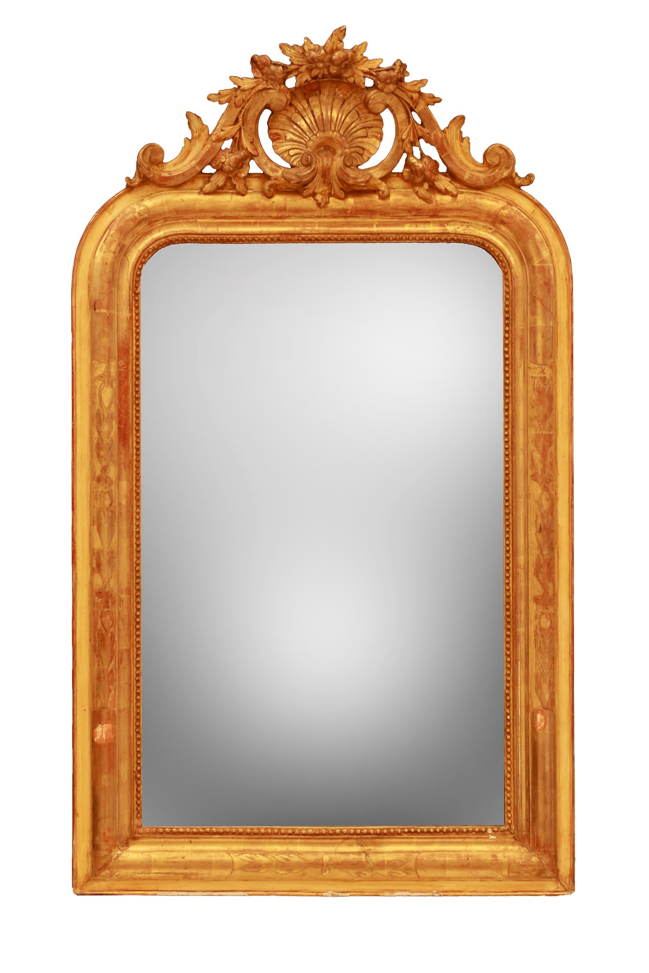 Specchiera in legno dorato con cimasa intagliata con conchiglia fine XIX secolo