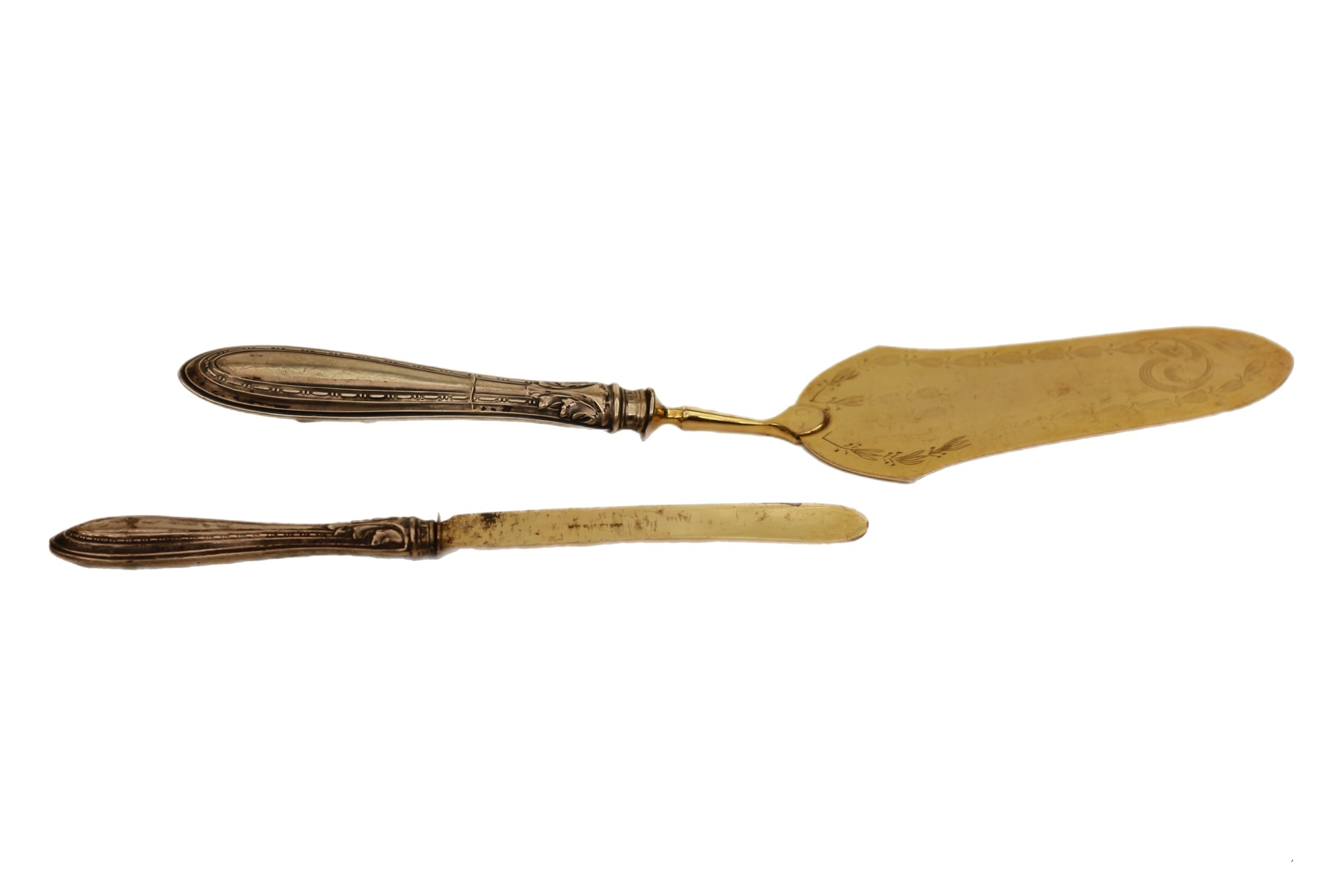 Lotto 290 | Lotto di posate tagliatorta e spalmaburro in argento 800/000
