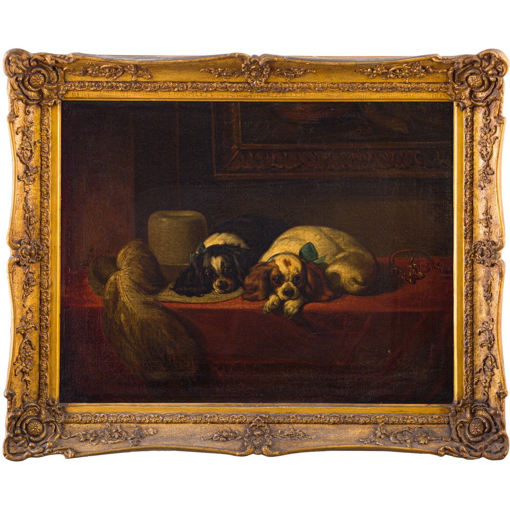 NARCISSE GARNIER, Interno con cani, Olio su tela