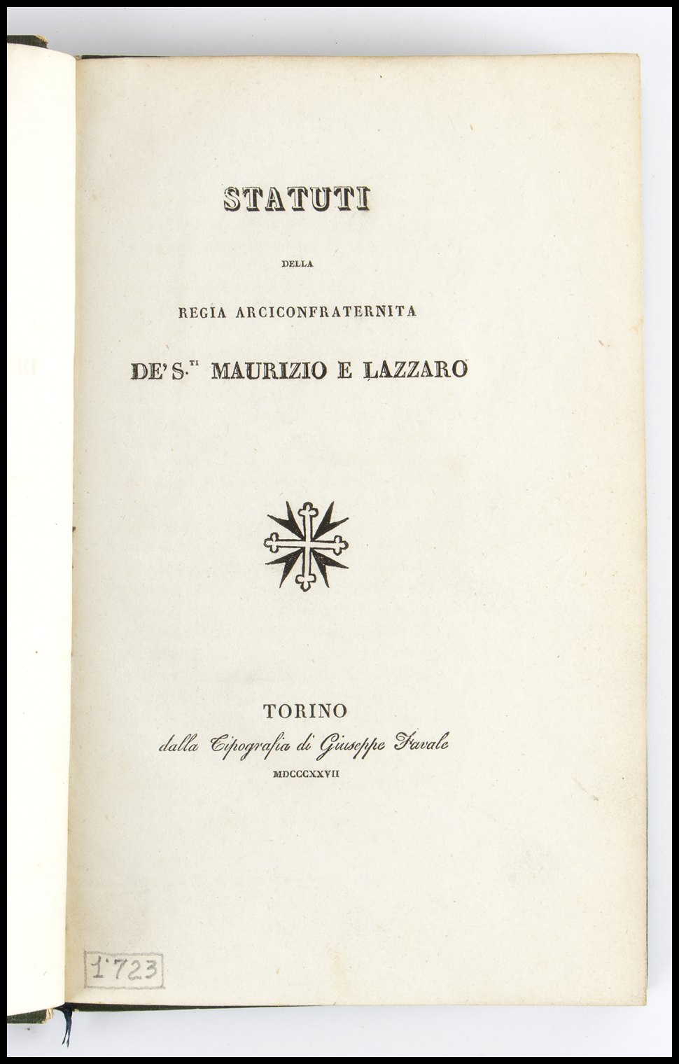 STATUTI DELLA REGIA ARCICONFRATERNITA DE' S. MAURIZIO E LAZZARO. Torino 1827