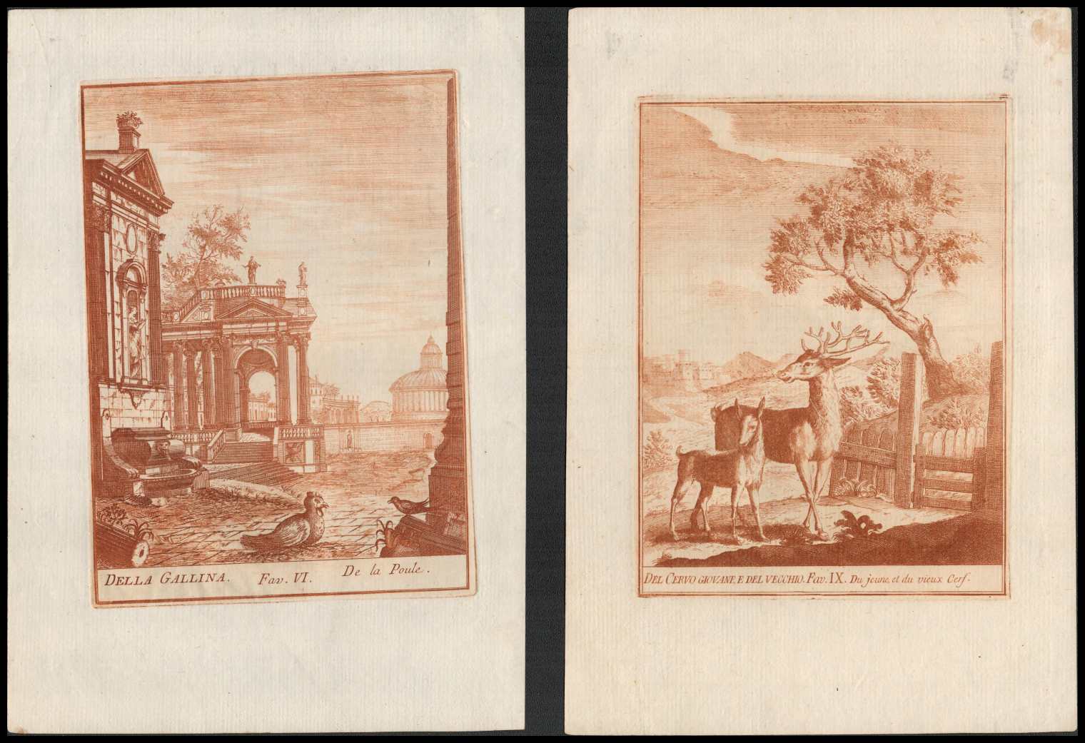 Lotto di due tavole tratte da Raccolta di varie favole, 1744