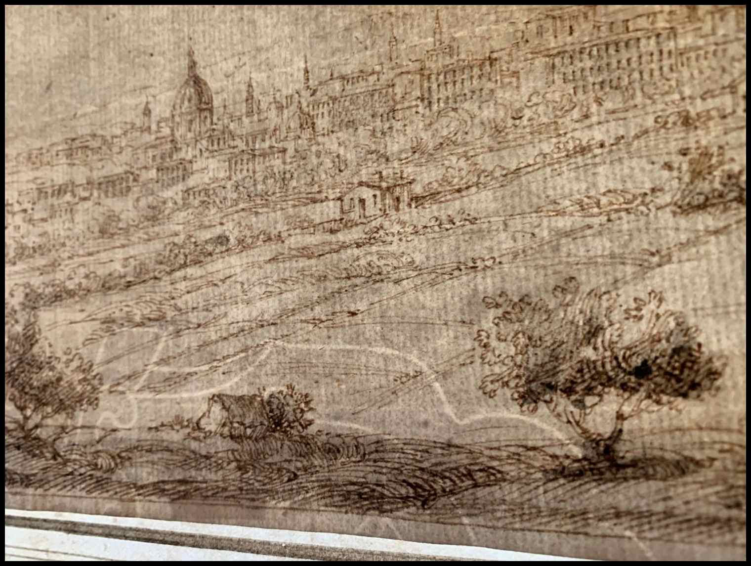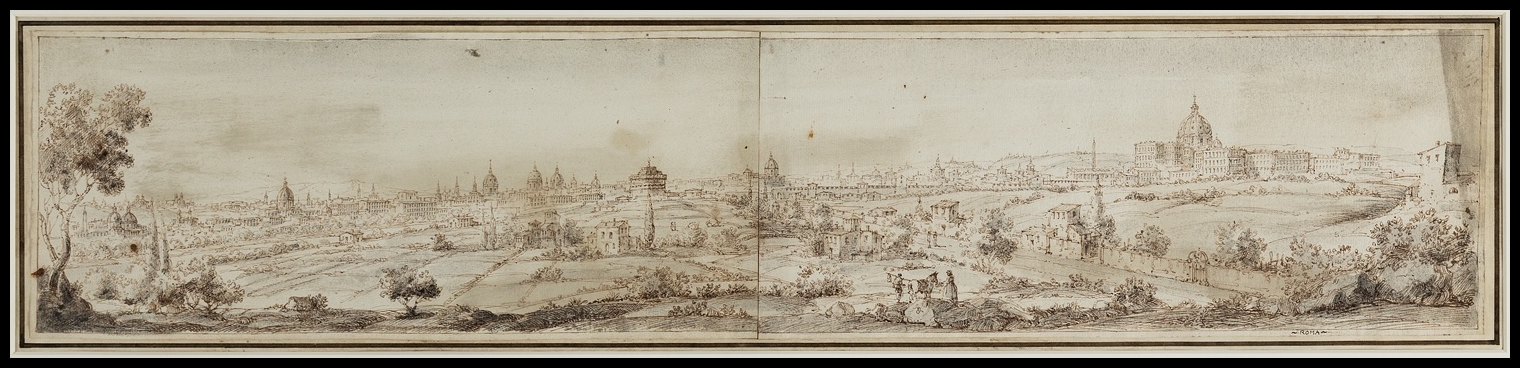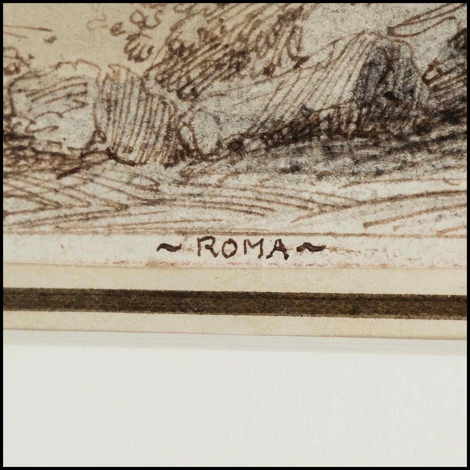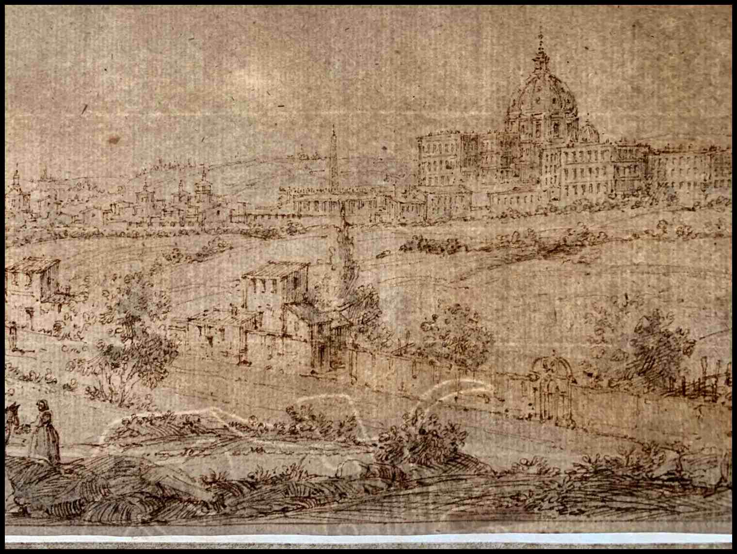 Anonimo disegnatore del XVIII secolo Veduta di Roma da Prati Inchiostro bruno...