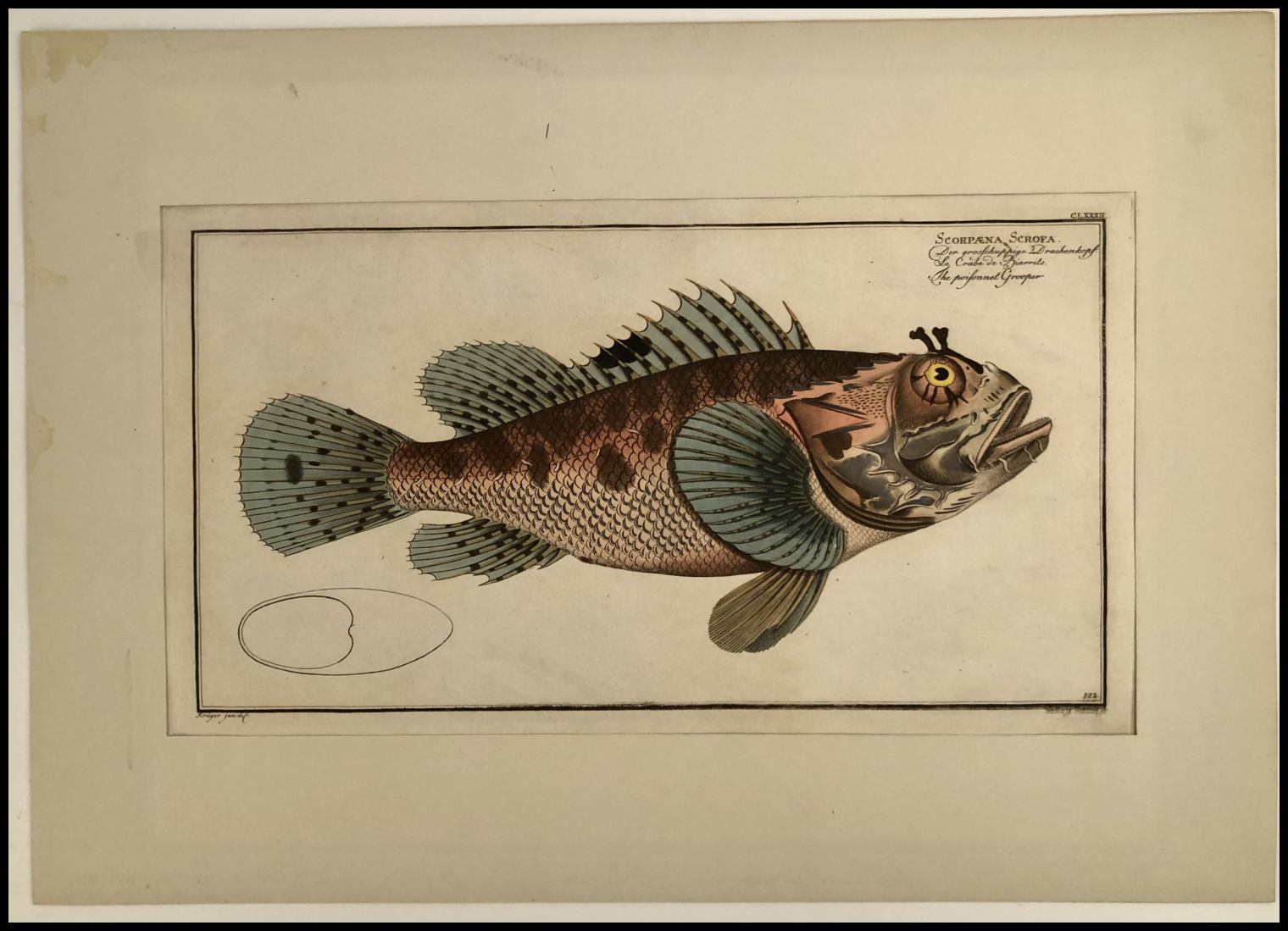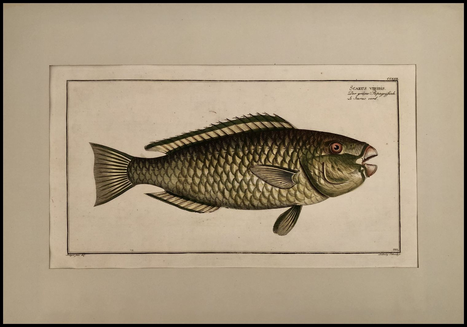 Marcus Elieser Bloch (1723-1799) Scarus viridis, Pesce pappagallo / Scorpaena...
