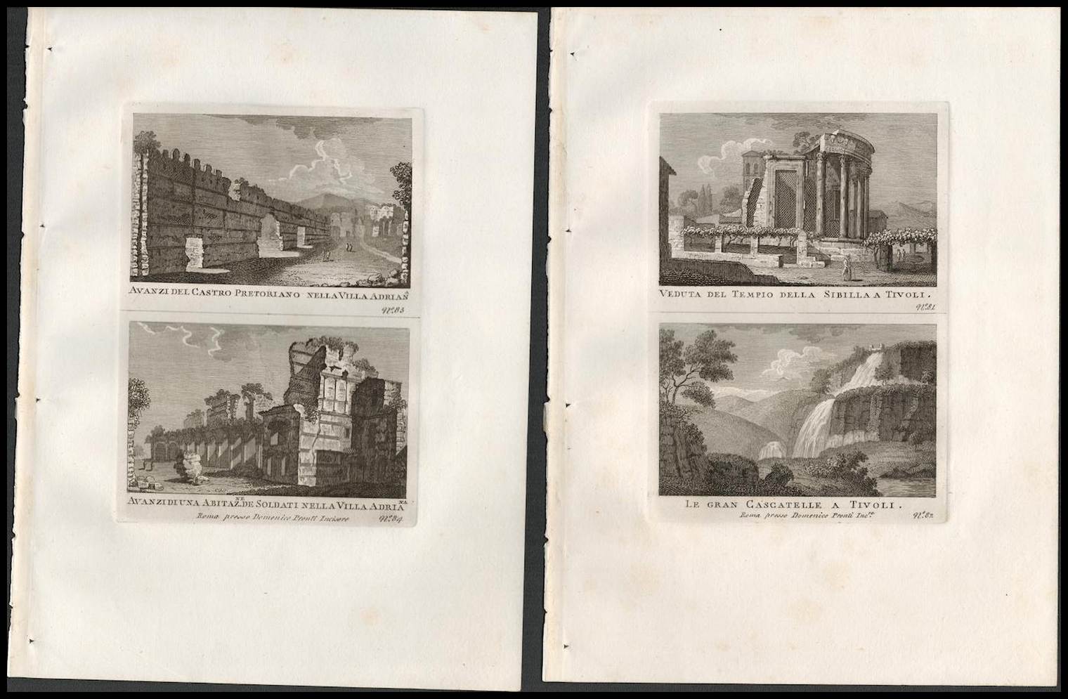 Lotto di 4 tavole con scorci di Tivoli tratte di "Nuova raccolta delle vedute moderne della città di Roma", 1795.