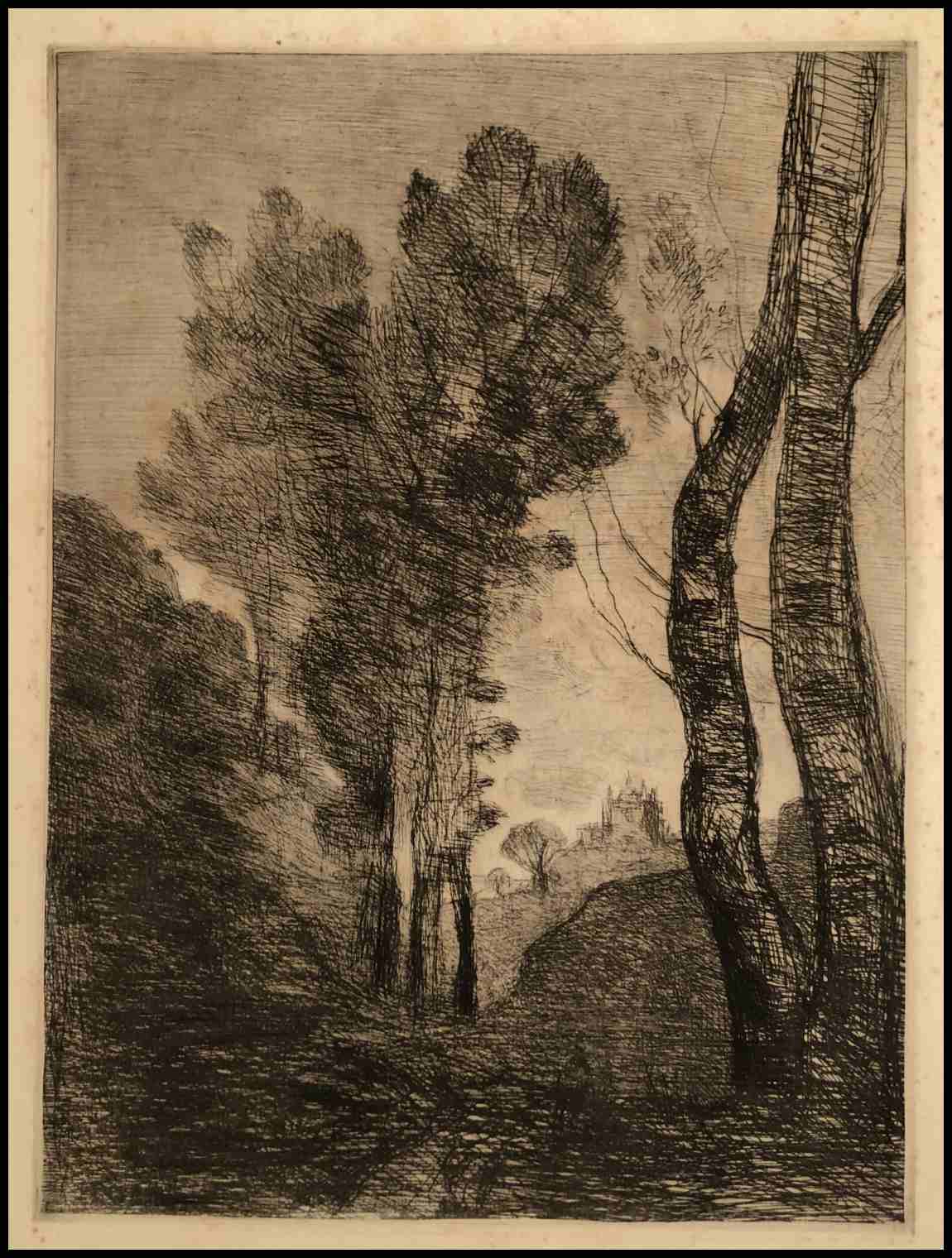 Jean-Baptiste Camille Corot (1796-1875) Environs de Roma, 1866 Acqauforte e...