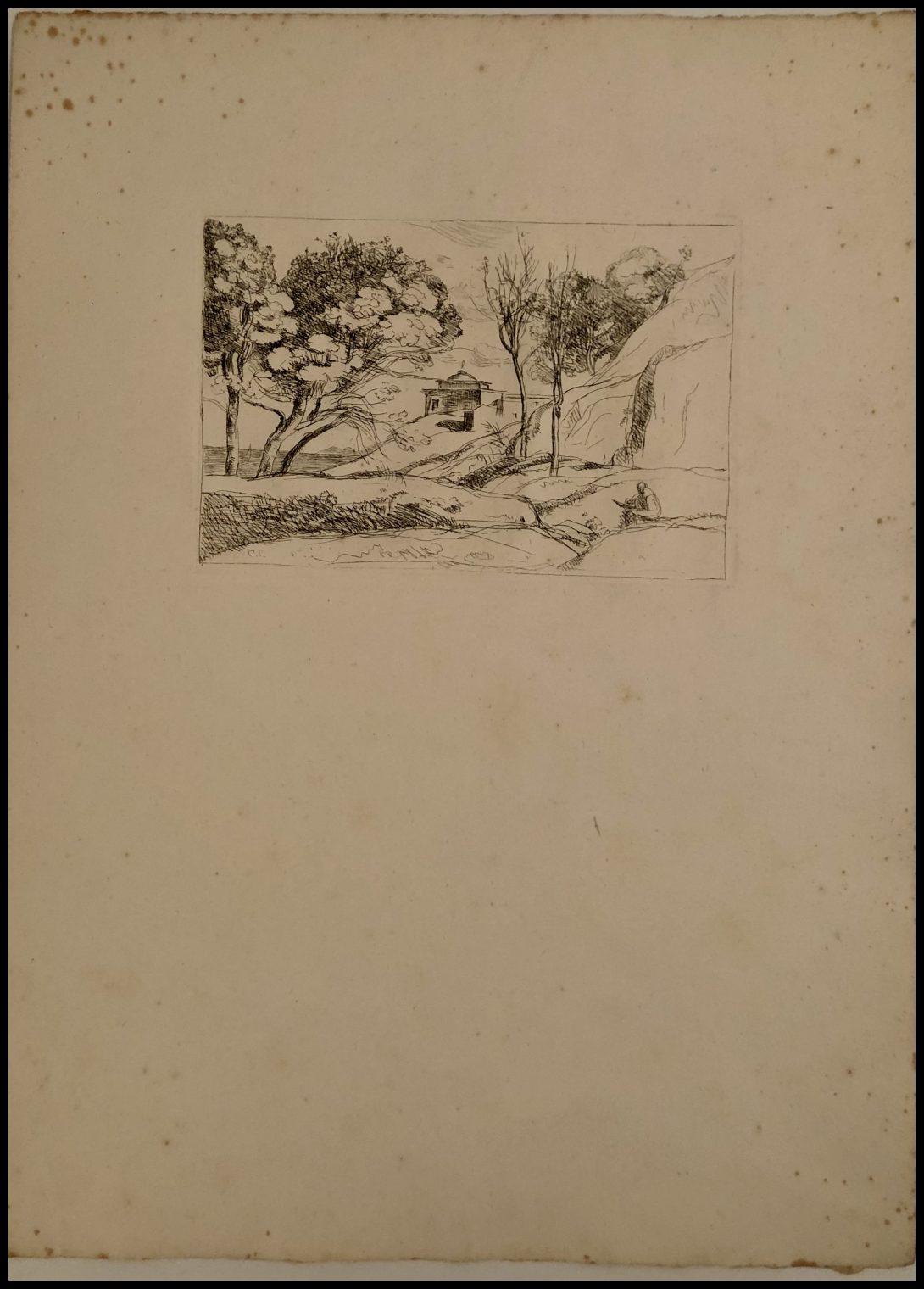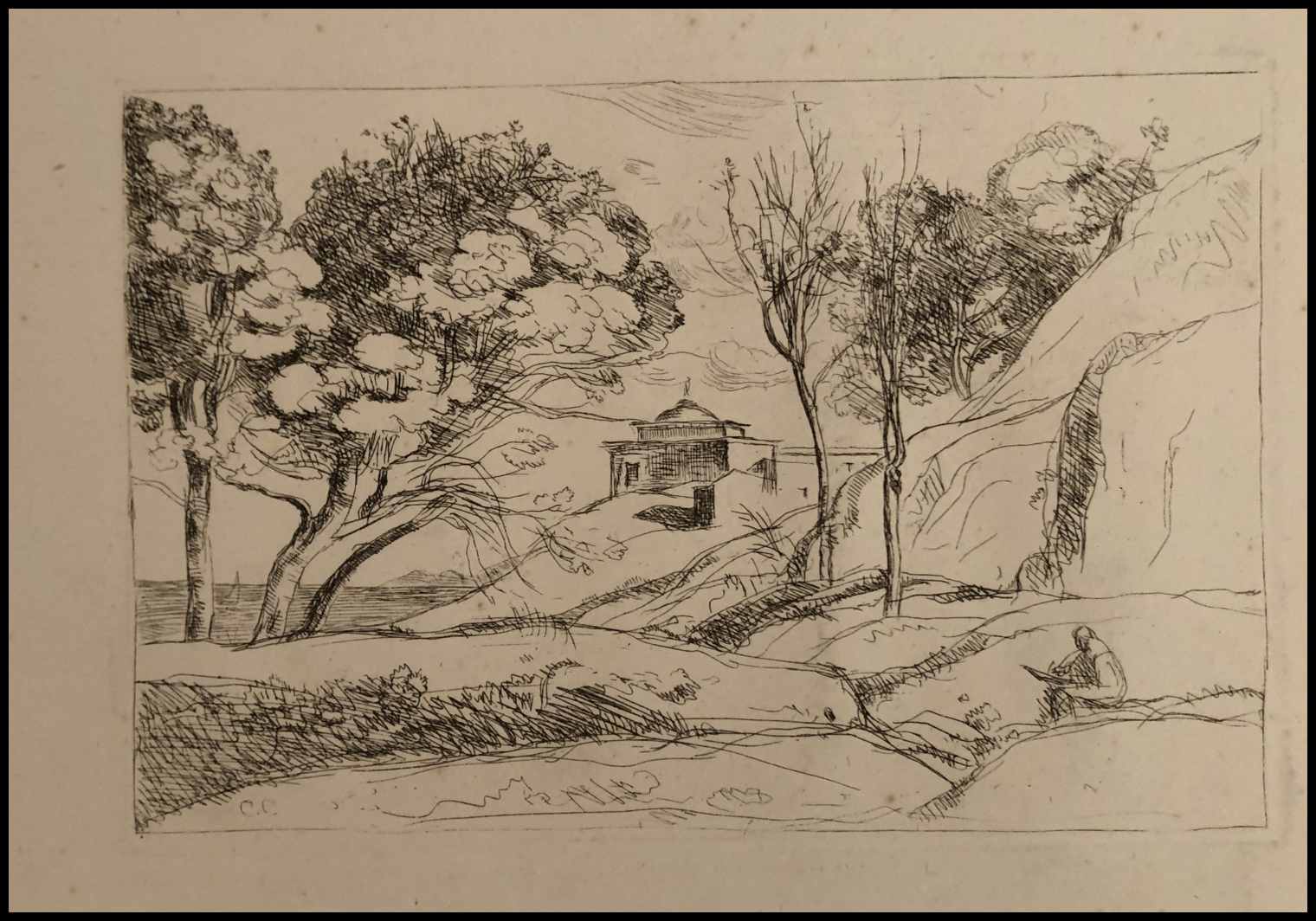 Jean-Baptiste Camille Corot (1796-1875) Souvenir de Toscane Acqauforte, 123 x...