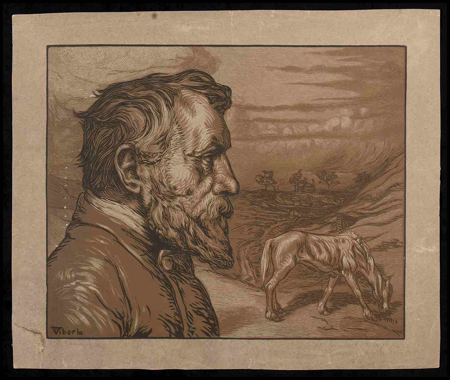 Vibert, svizzero di nascita, si trasferì a Parigi nel 1892 con il fratello scultore e venne attratto dalla tecnica della xilografia, producendo sia illustrazioni che opere singole, soprattutto ritratti e colpito dalle misere condizioni di contadini e braccianti, ne rappresentava spesso la vita quotidiana con grande realismo, attraverso i tratti profondi dell'incisione su legno. Nel 1900 ottenne la medaglia d'argento all'Esposizione Universale e fu uno dei membri fondatori del Salon d'Automne nel 1903.,