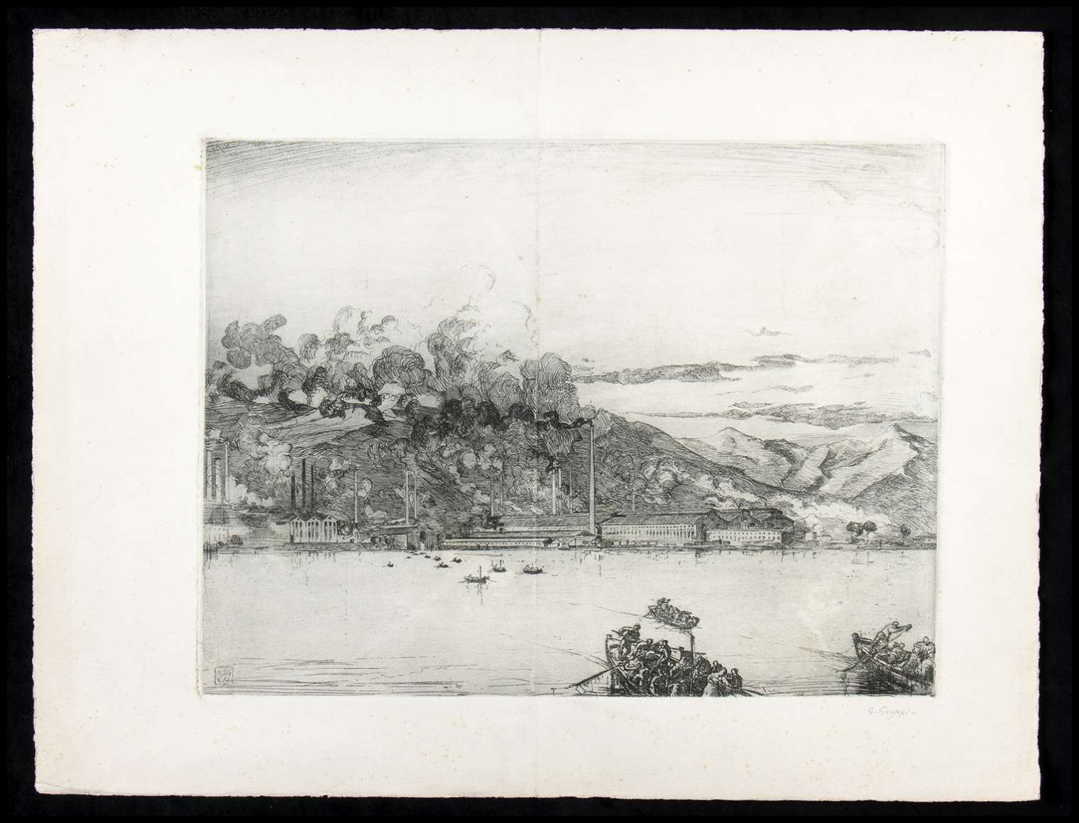 La ferriera sul Lago d'Iseo, con regata di canottaggio esemplare tratto dalla raccolta L'INDUSTRIA ITALIANA PER LA GUERRA 1915-1918 ed. BESTETTI E TUMMINELLI, 1926