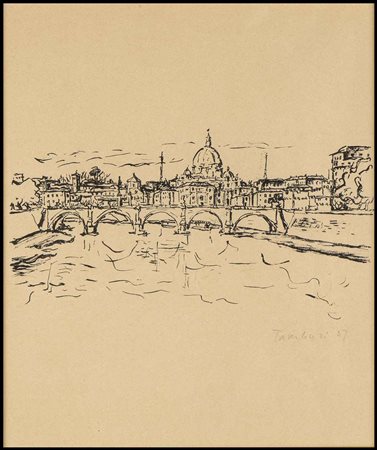 Orfeo Tamburi (1910-1994) Veduta di San Pietro e Ponte S. Angelo a Roma, 1937...