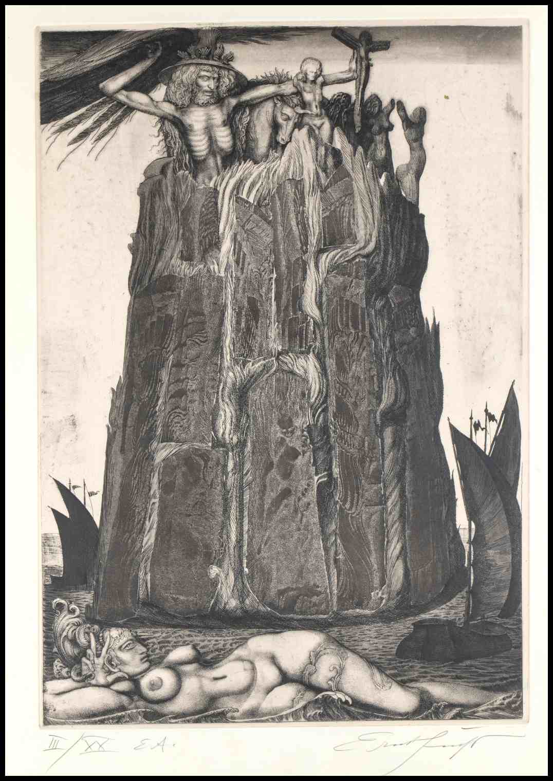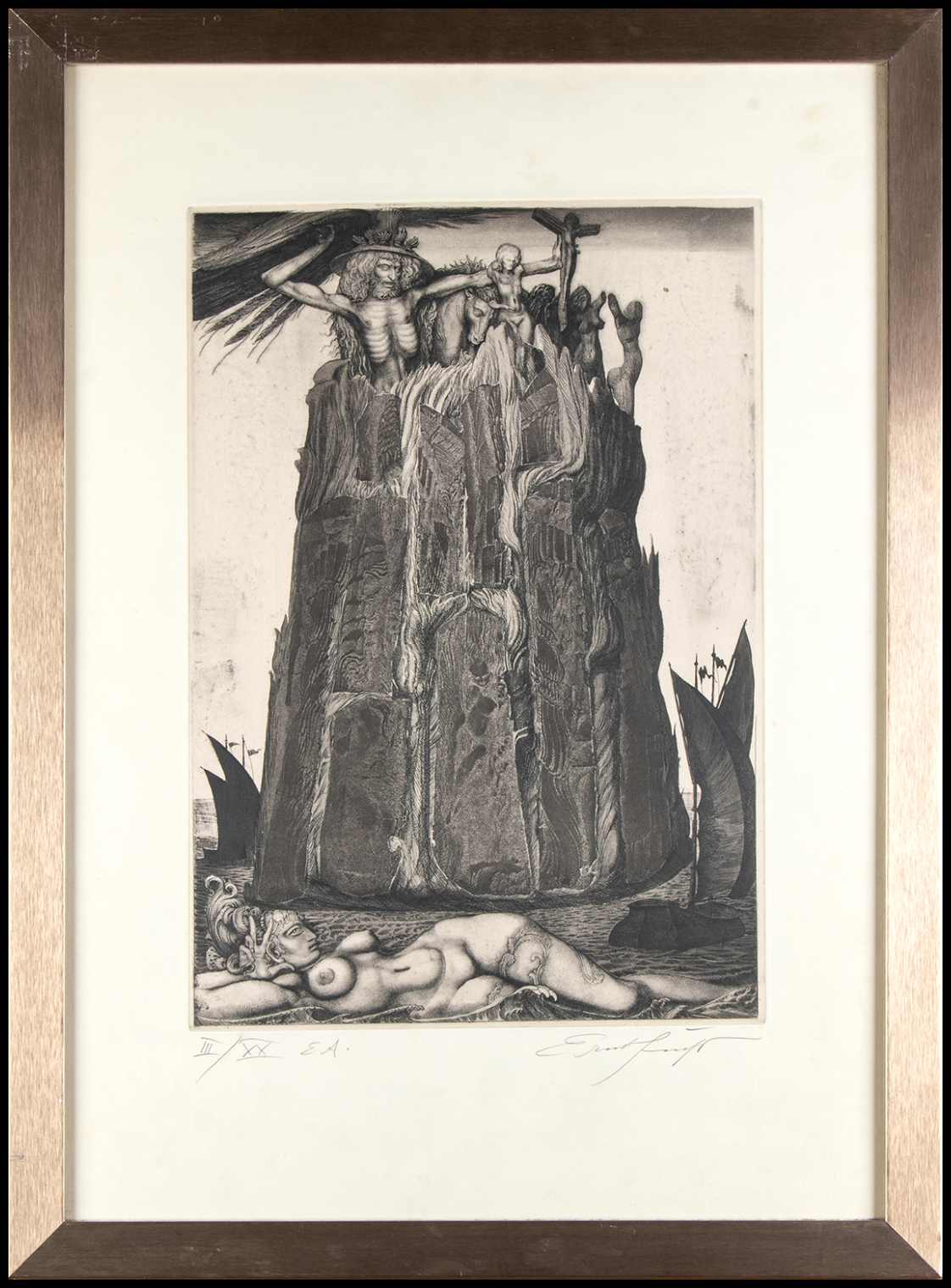Ernst Fuchs (1930-2015) La Torre di Babele II Acquaforte e acquatinta, 49,5 x...
