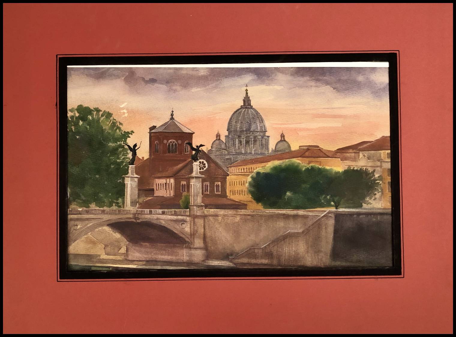 Vista dal Ponte San Angelo a Roma a tramonto, 1940 Acquarello su carta, 240 x...