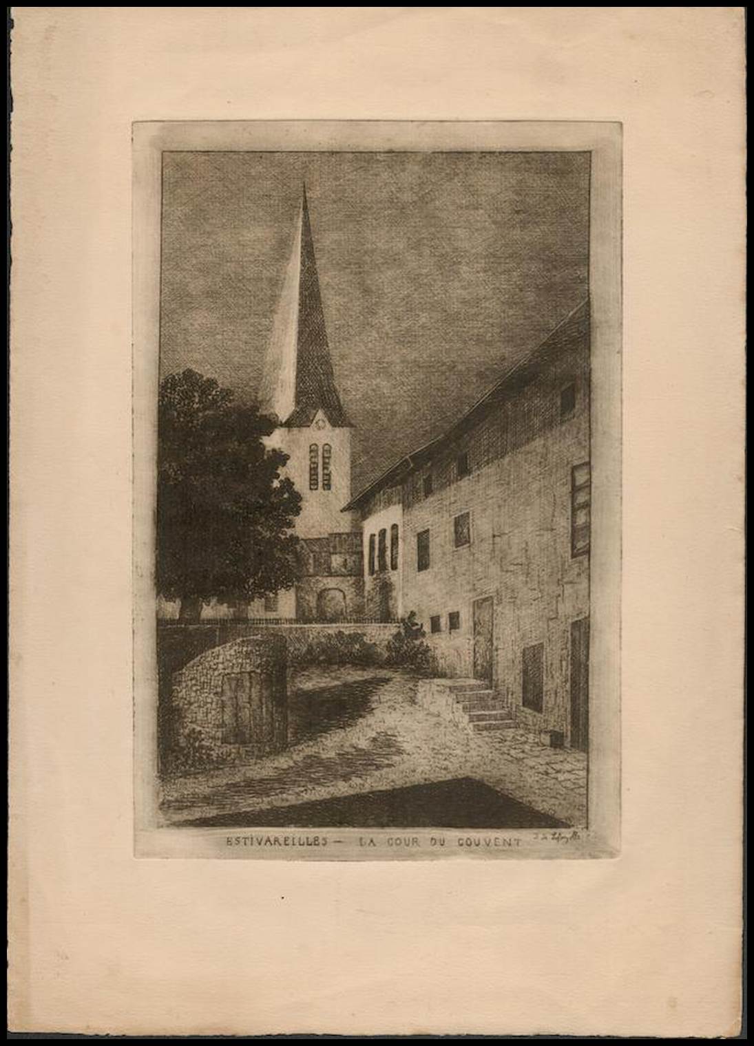 Estivareilles - La Cour du Couvent Acquaforte, 256 x 168 mm (lastra); 356 x...