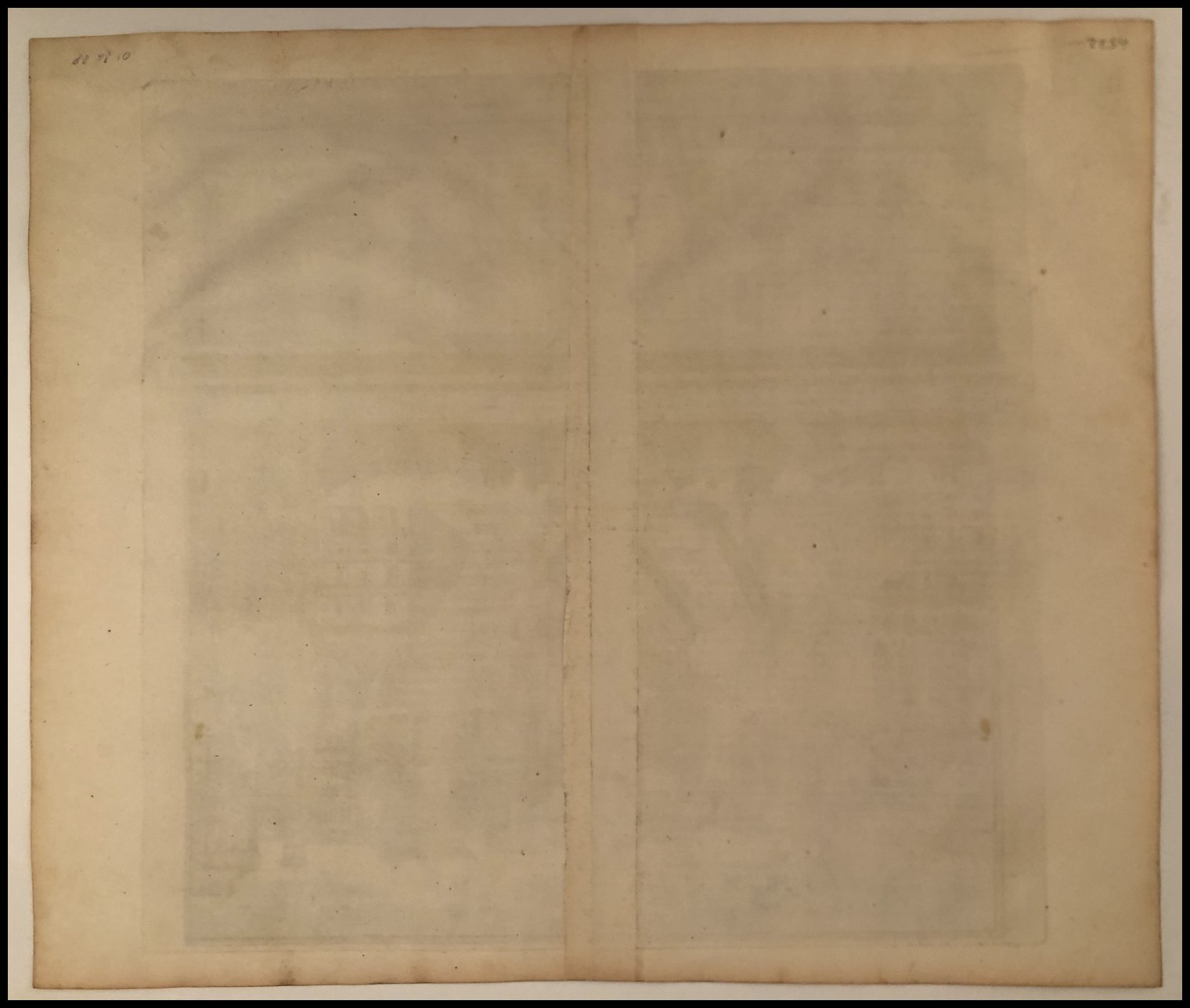 Nitida impressione su carta vergellata, consueta piega centrale. Due piccoli fori. Fissata su passepartout moderno.