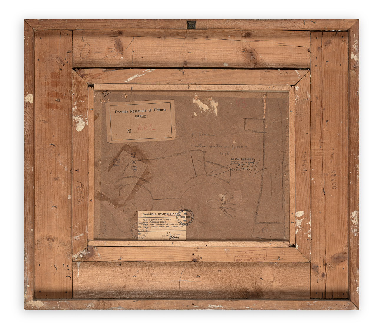 Etichetta e timbri della Galleria d'Arte Sianesi (MI) al retro con numero di registro