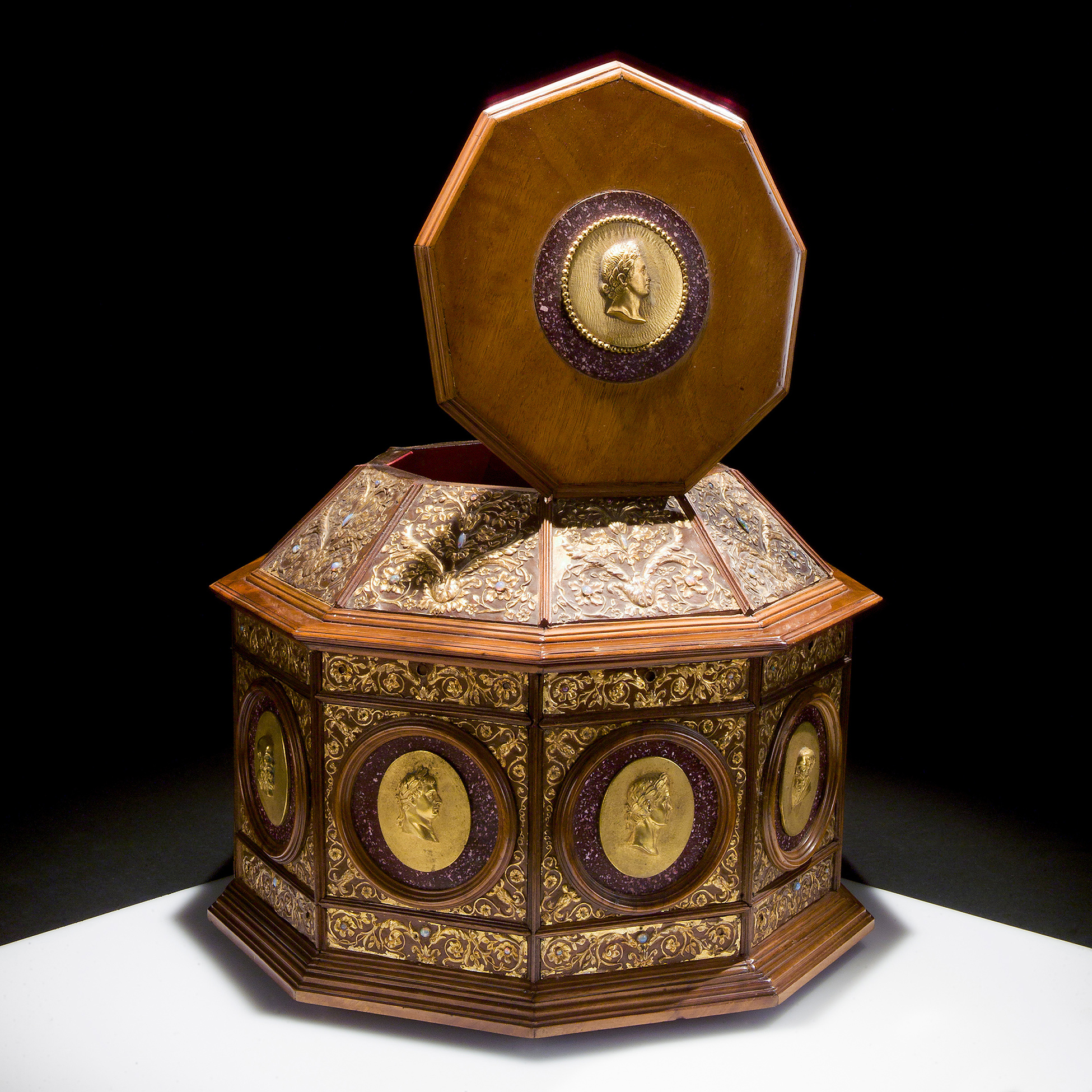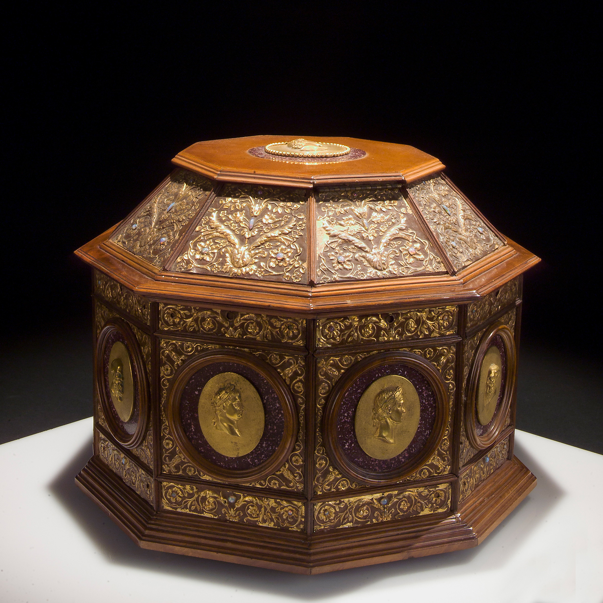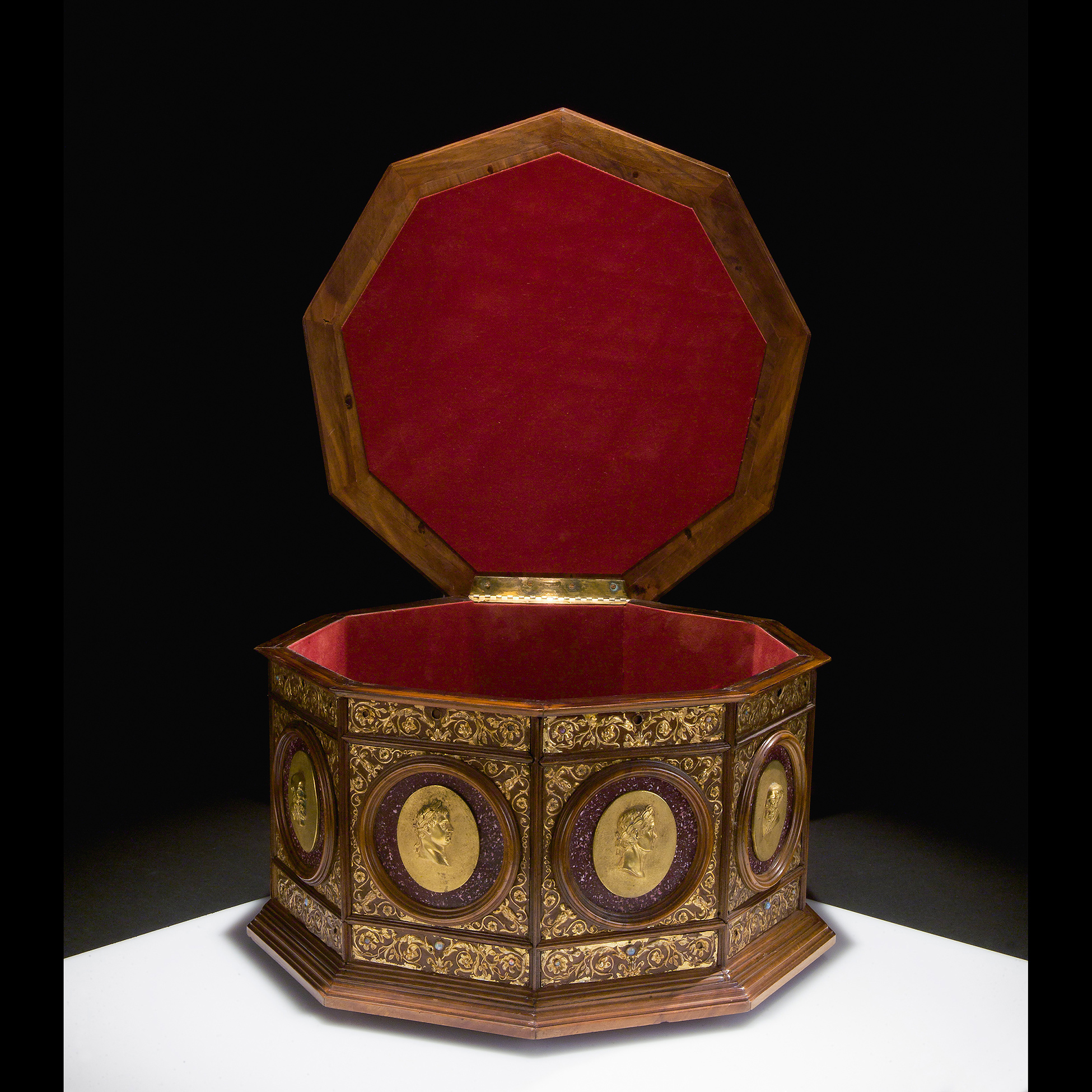 Precedente Lotto 21 Successivo Telearte - Piazzale Ammiraglio Bergamini 10, 00136 Roma Fine Art & Antiques Fine Art & Antiques martedì 27 giugno 2023 ore 17:00 (UTC +01:00) Cofanetto in legno ottagonale, con argento, cammei e dorature. Francia inizi del XIX secolo Dimensioni complessive 27x33x33 cm.