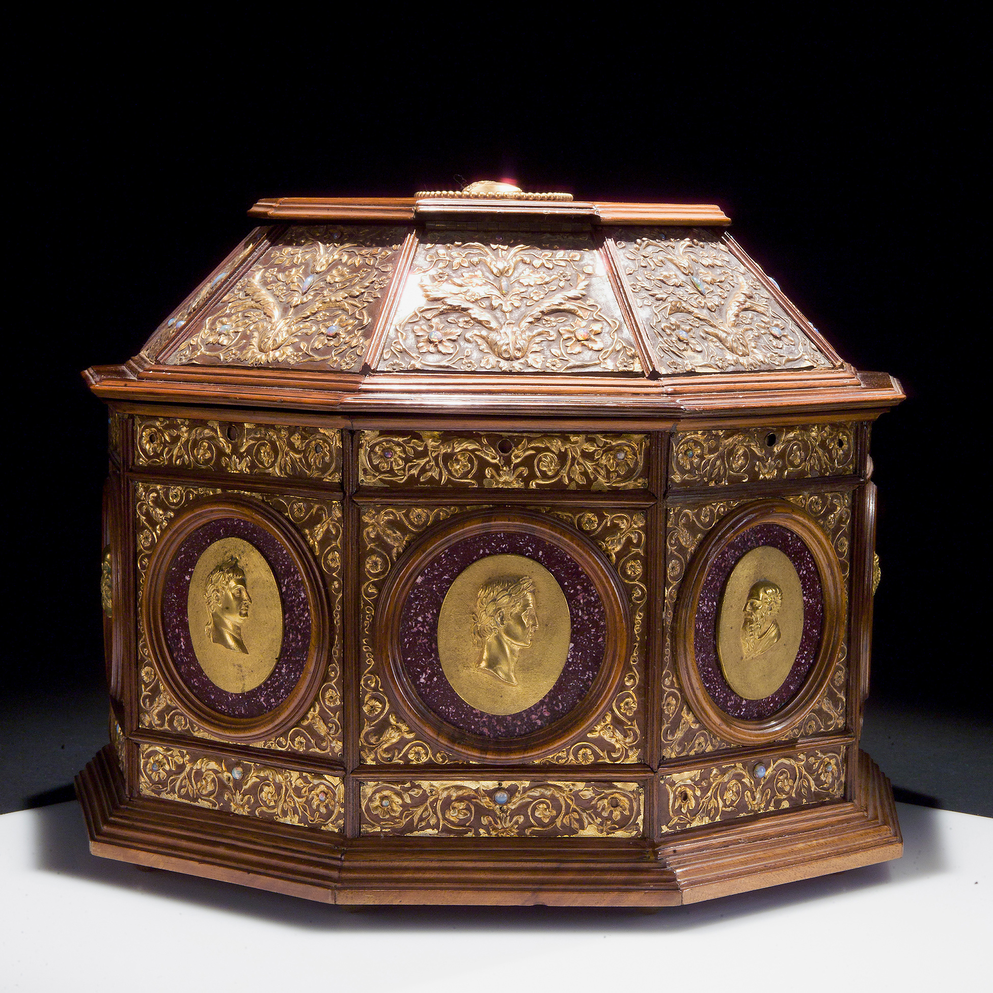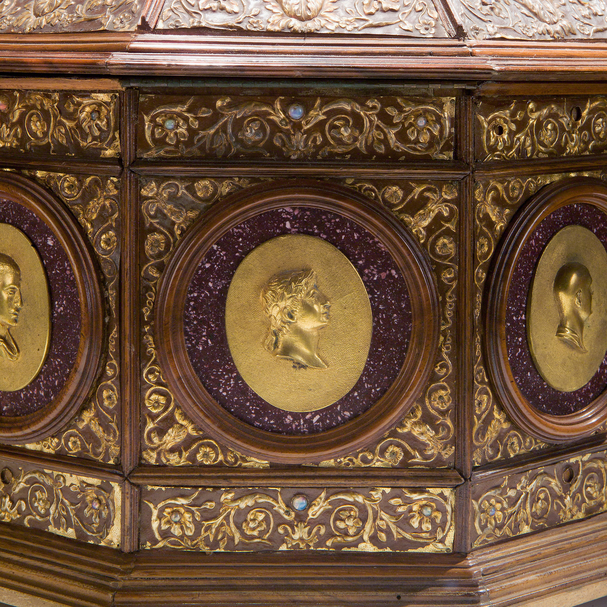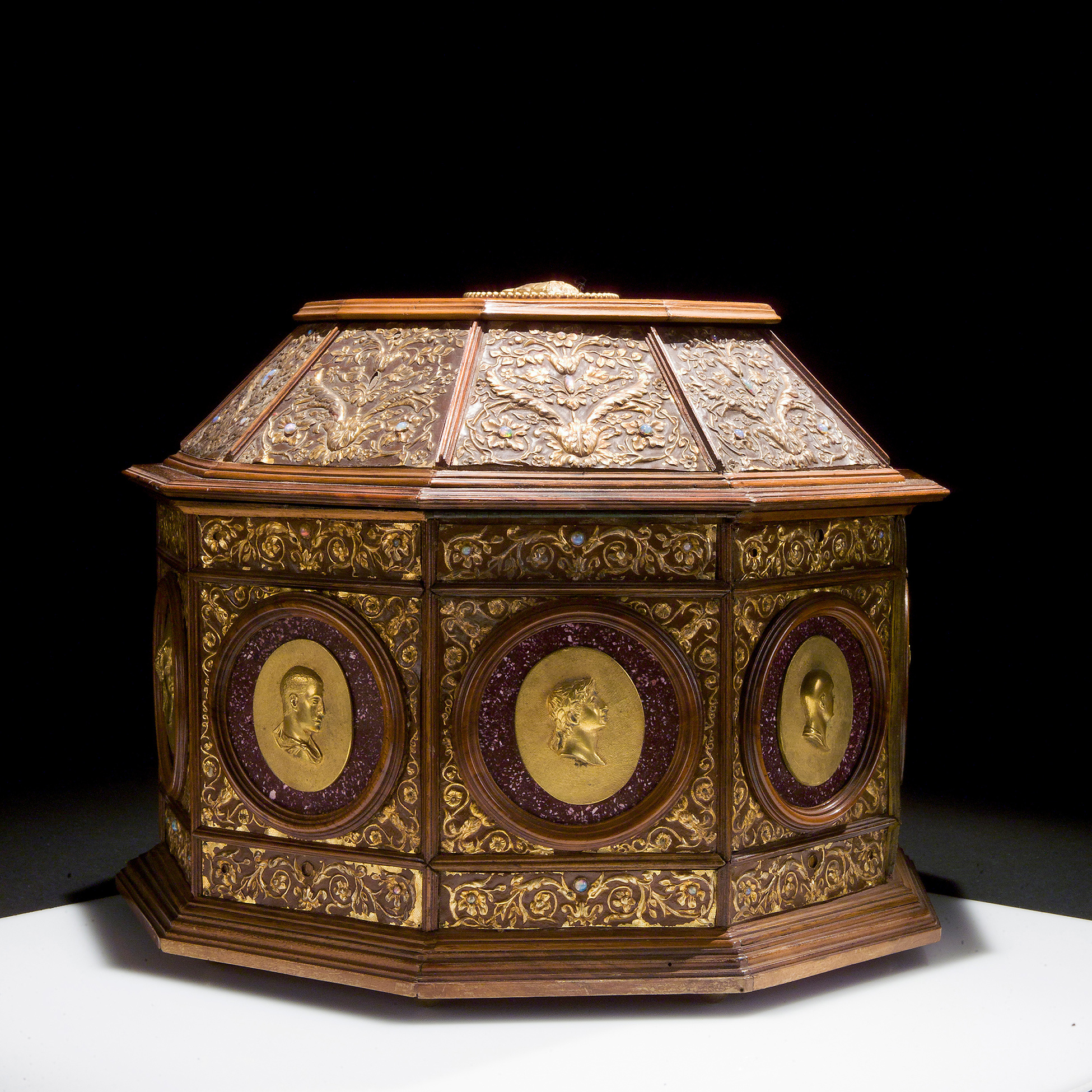 Precedente Lotto 21 Successivo Telearte - Piazzale Ammiraglio Bergamini 10, 00136 Roma Fine Art & Antiques Fine Art & Antiques martedì 27 giugno 2023 ore 17:00 (UTC +01:00) Cofanetto in legno ottagonale, con argento, cammei e dorature. Francia inizi del XIX secolo Dimensioni complessive 27x33x33 cm.