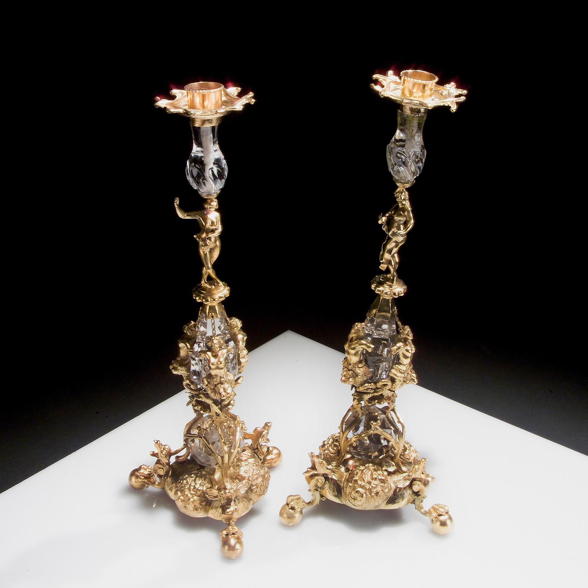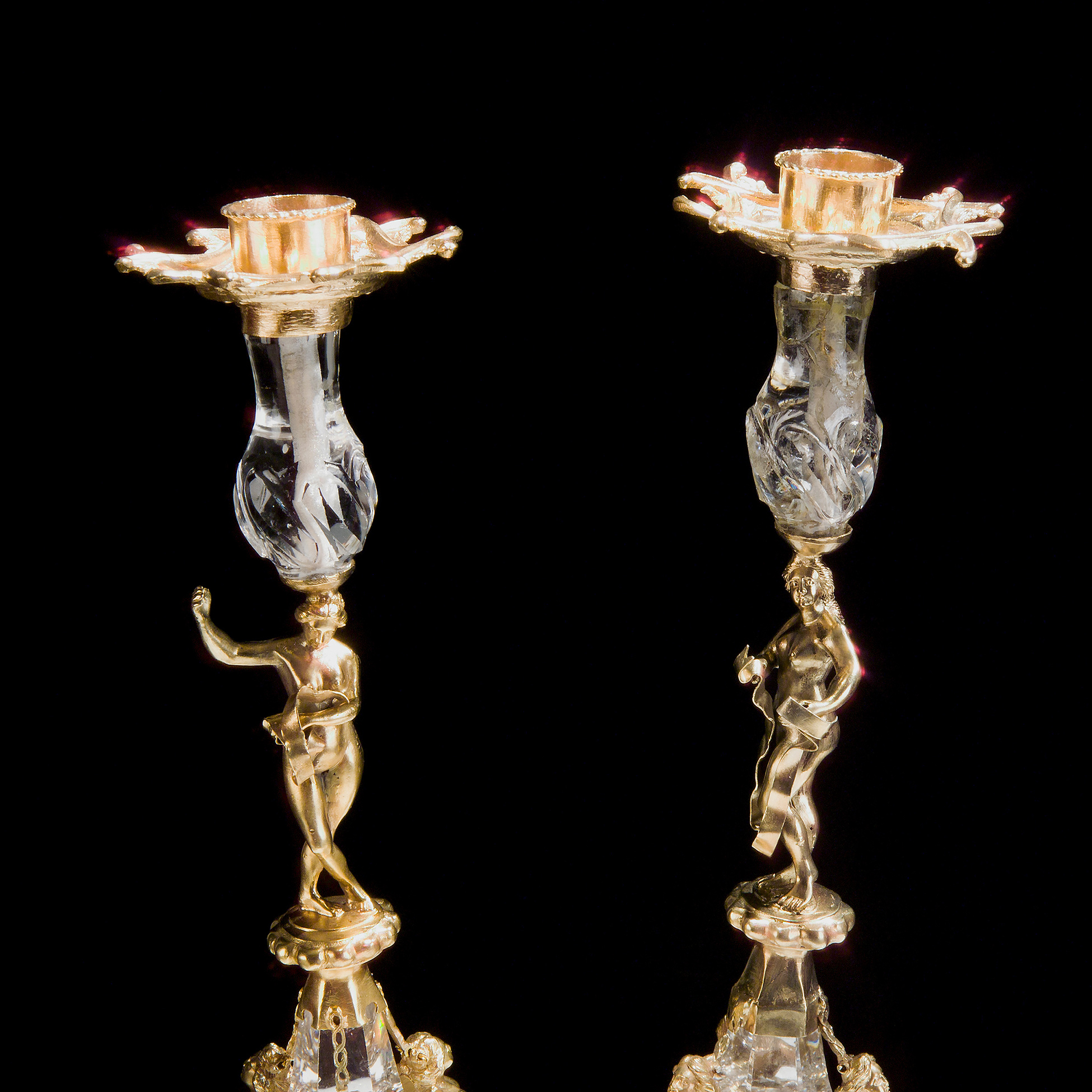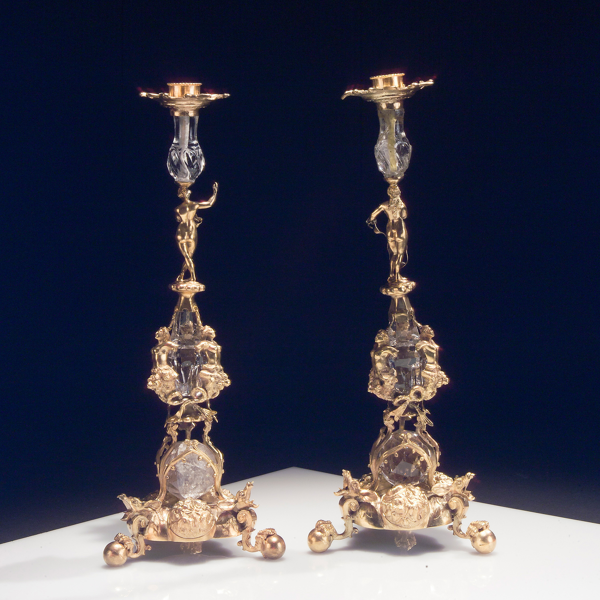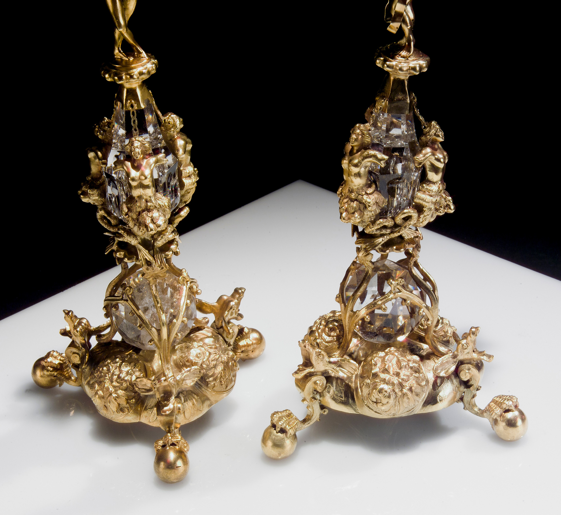 Lotto 38 | Coppia di candelieri in bronzo dorato e cristallo di rocca, Germania fine XVIII secolo