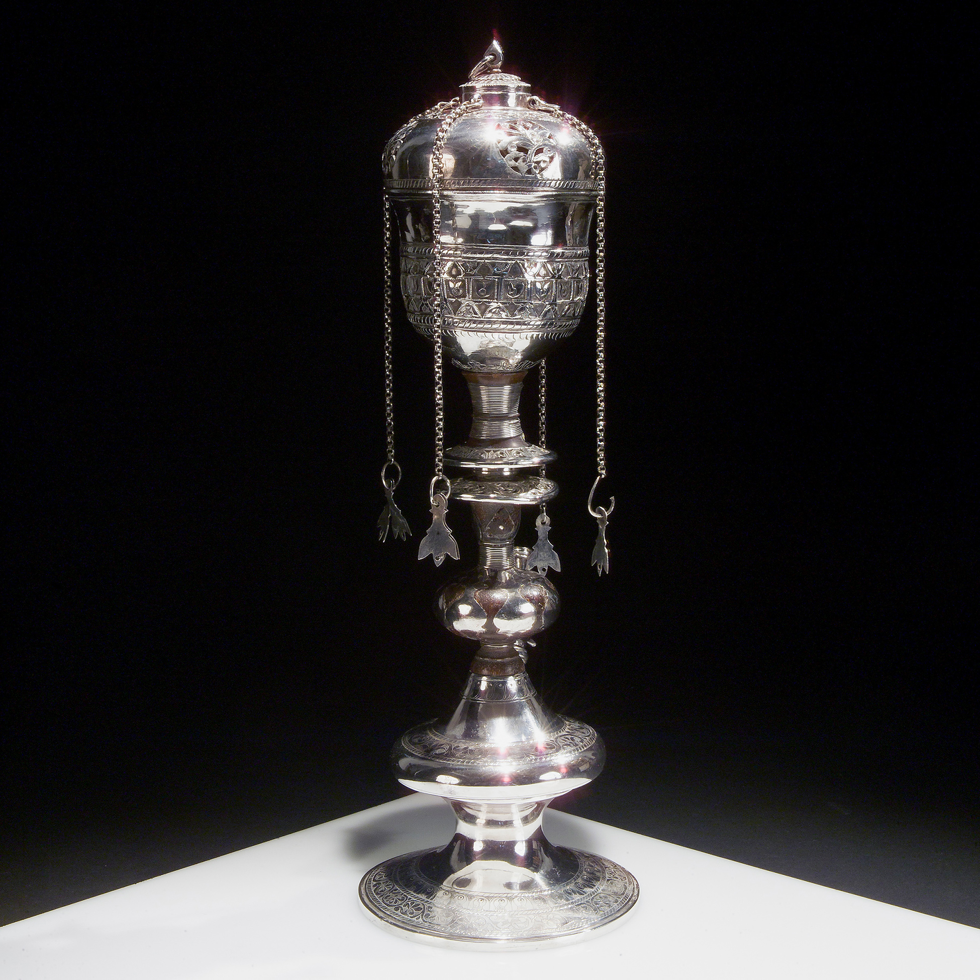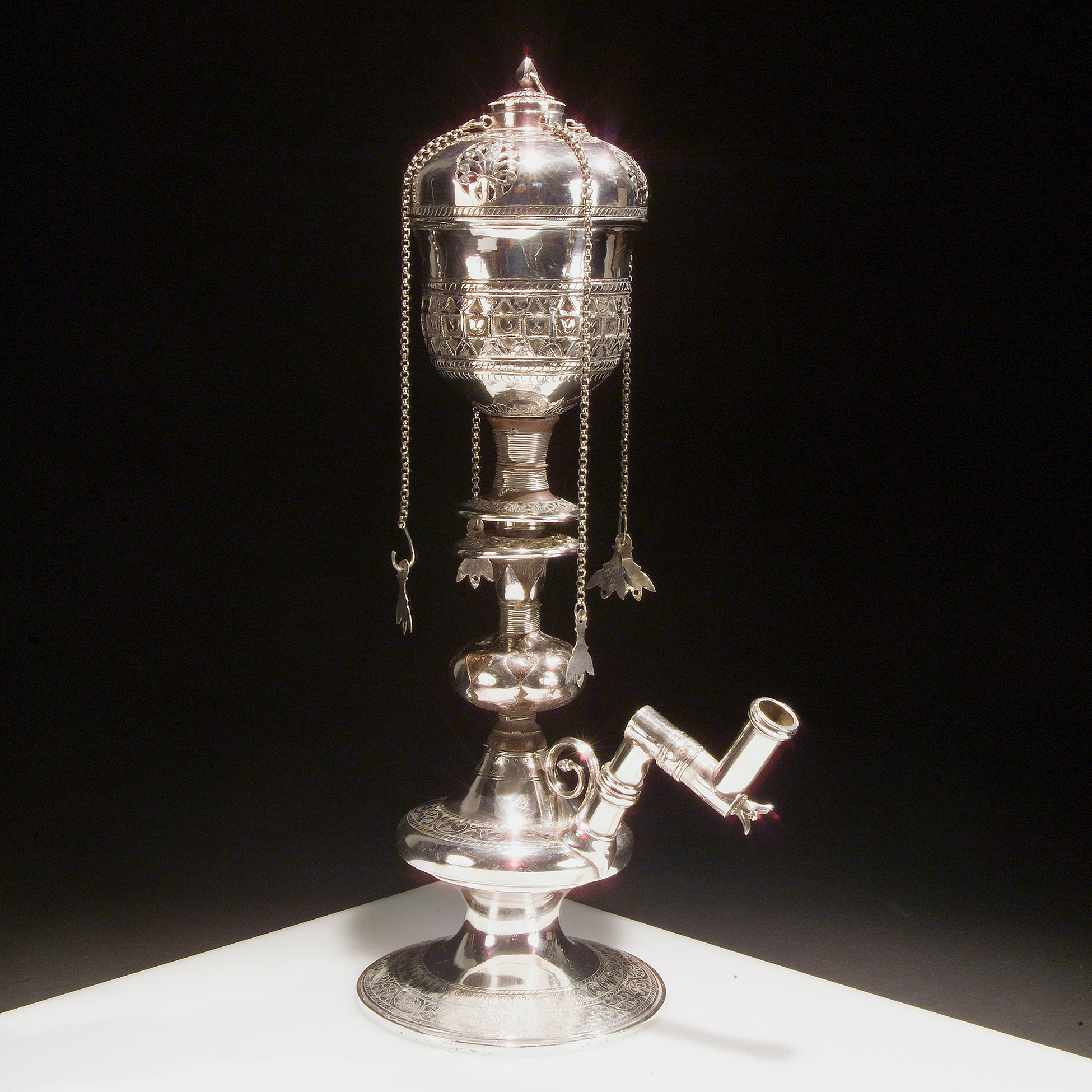 Narghile' in legno e argento, manifattura orientale del XIX secolo