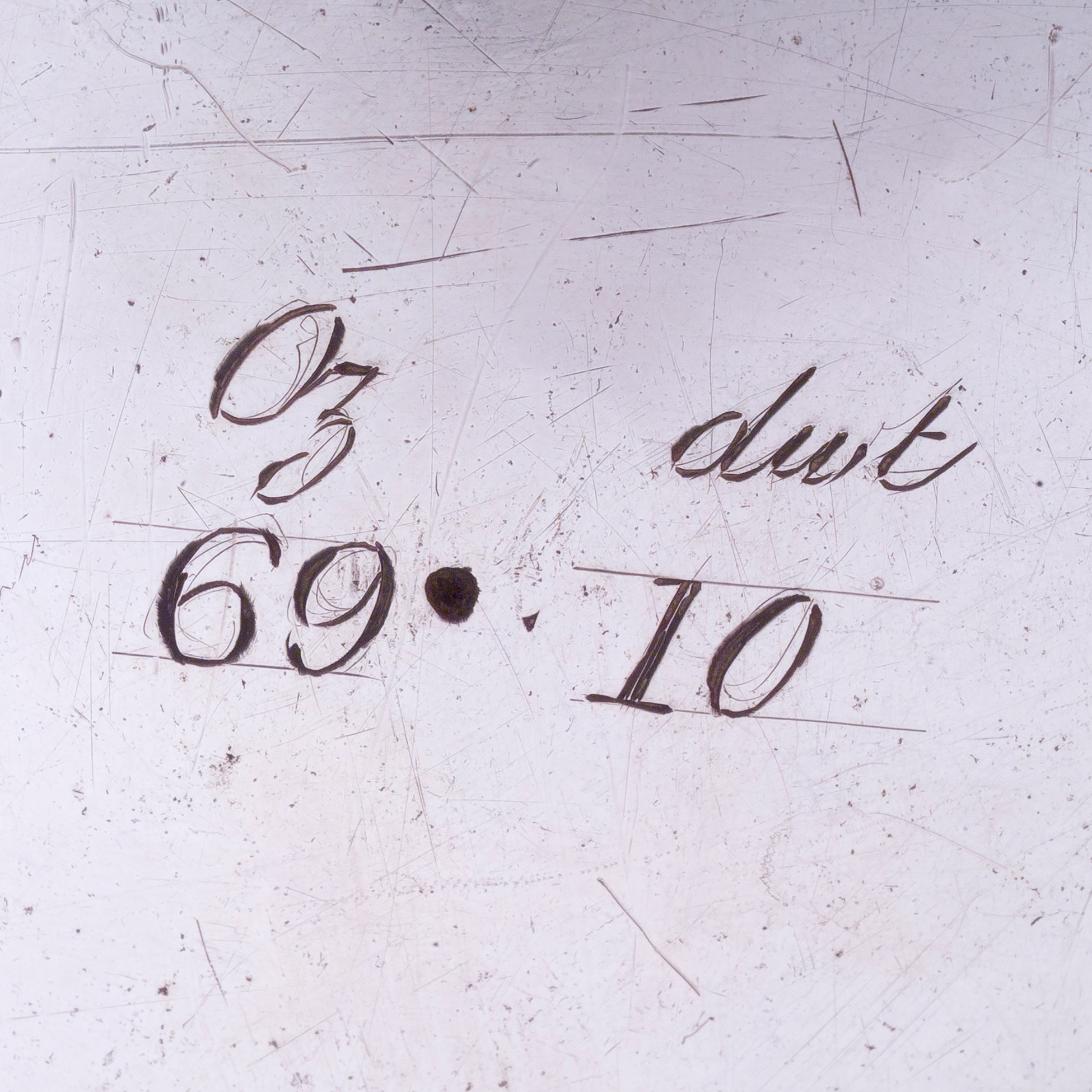 Punzoni del maestro argentiere inglese W. Pearson. Dimensioni complessive 34x21x19 cm. Peso complessivo gr. 2194