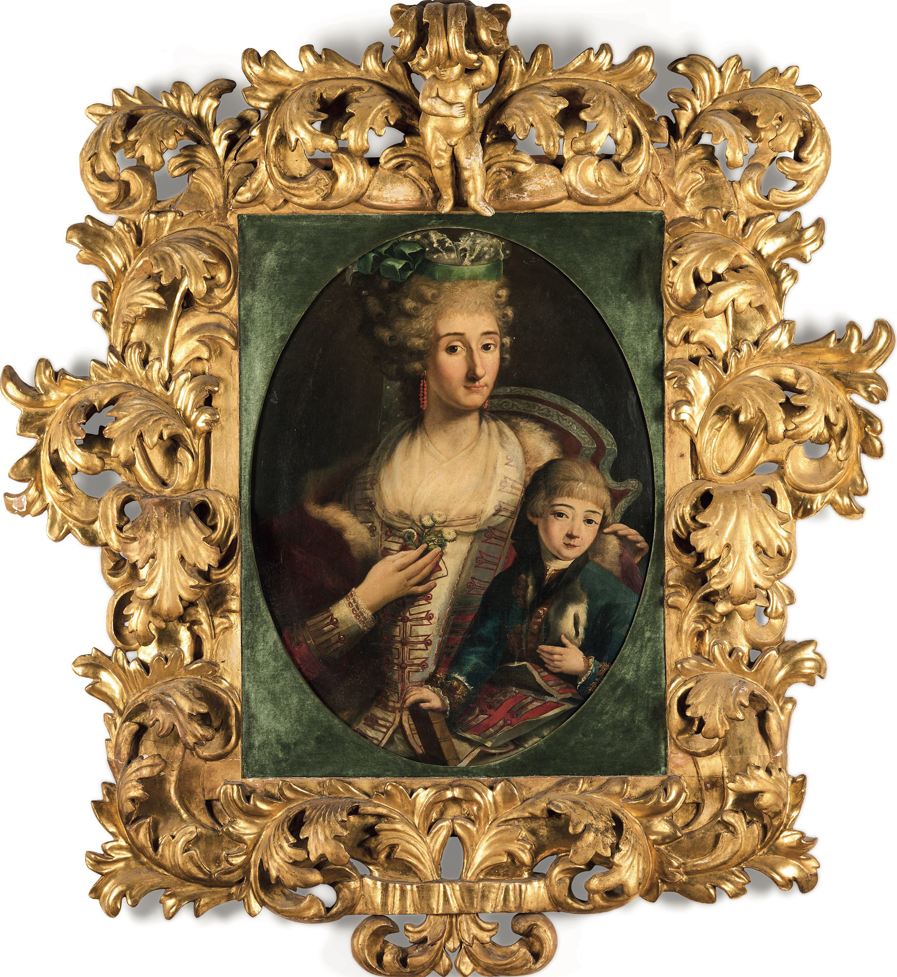 Scuola parmense della seconda metà del XVIII secolo La cornice misura h. 155 e l. 142, Ritratto di gentildonna con il figlio