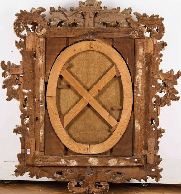 entro importante cornice in legno scolpito e dorato a motivo di volute vegetali (Parma, fine XVII/inizi XVIII secolo), olio su tela, Cm 88X64