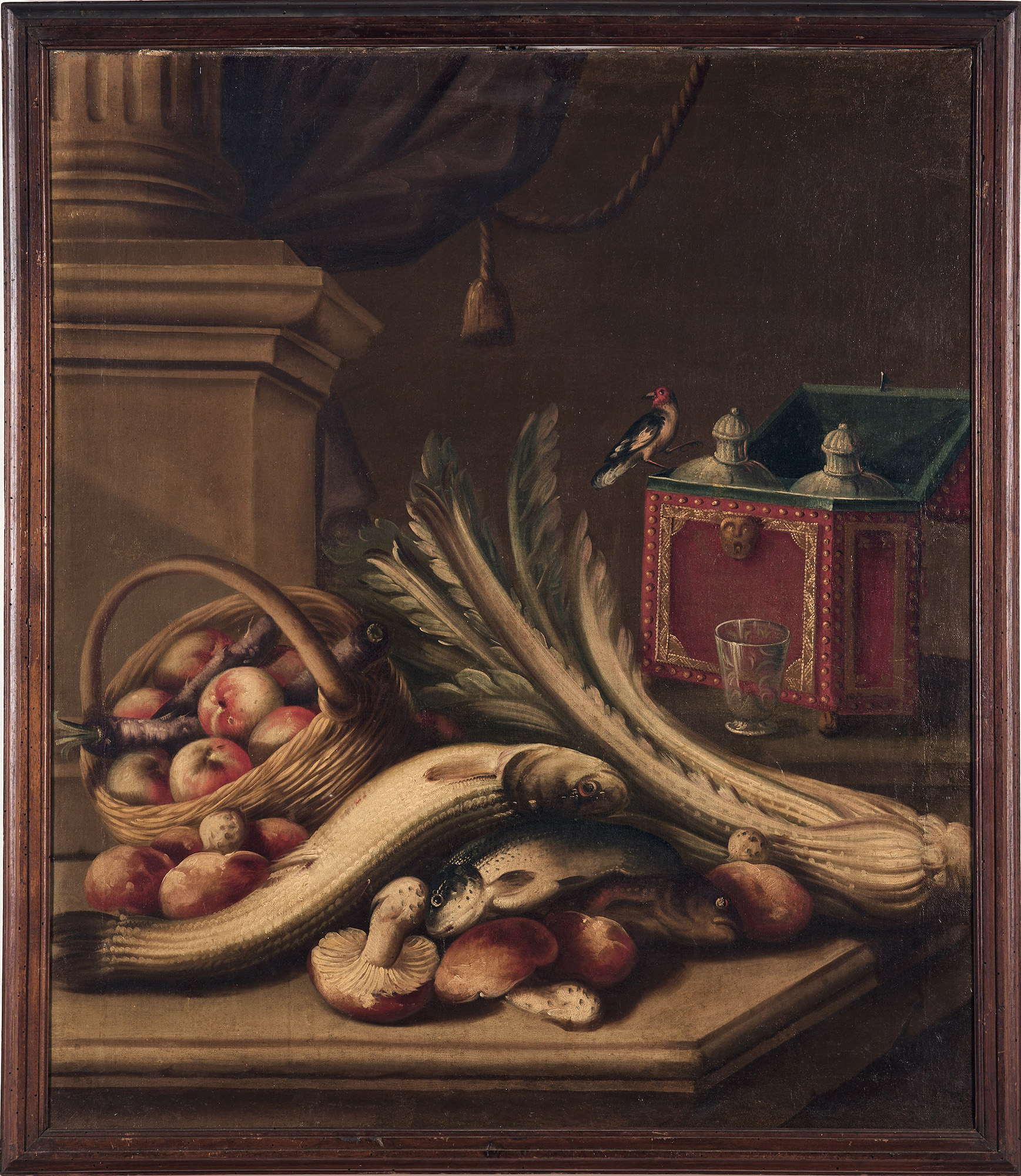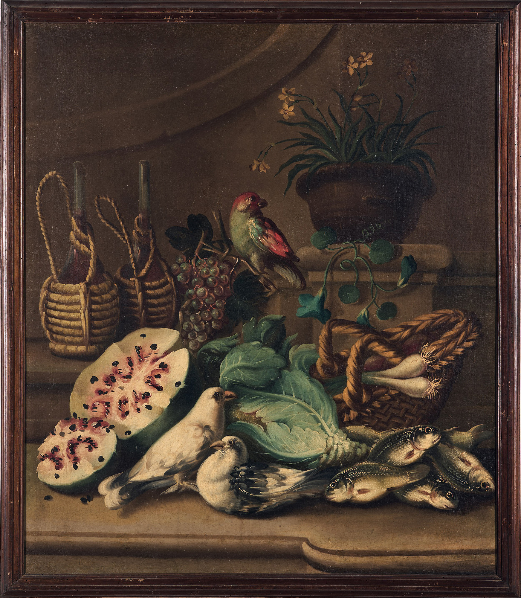 Scuola lombarda del XVIII secolo, Nature morte con frutti, ortaggi, pesci e altri animali