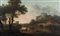 Jan Joost van Cossiau 1660-1732 ca., Paesaggio con coppia di contadini in riva al fiume