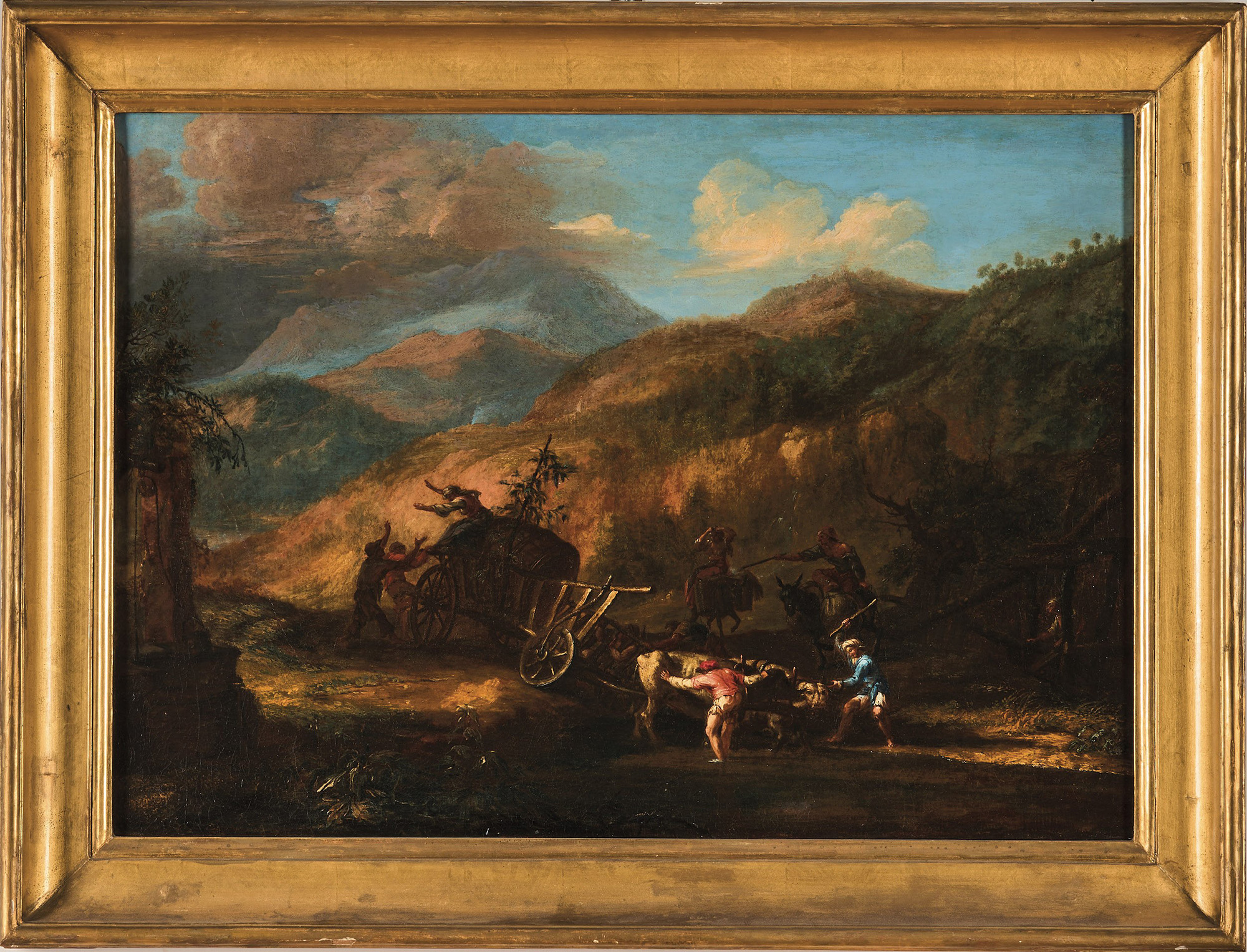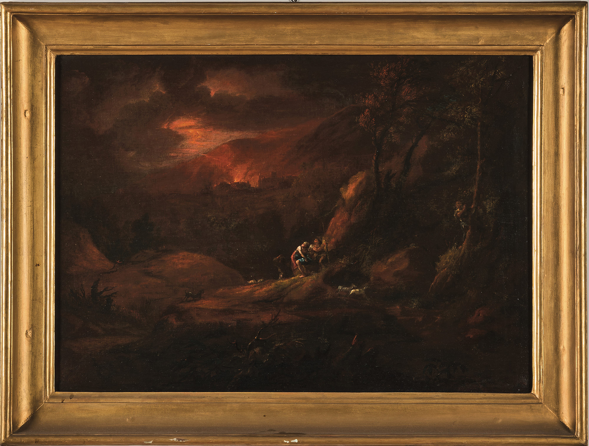 Lotto 244 | Scuola del XVIII secolo, L'assalto alla diligenza, Notturno con incendio