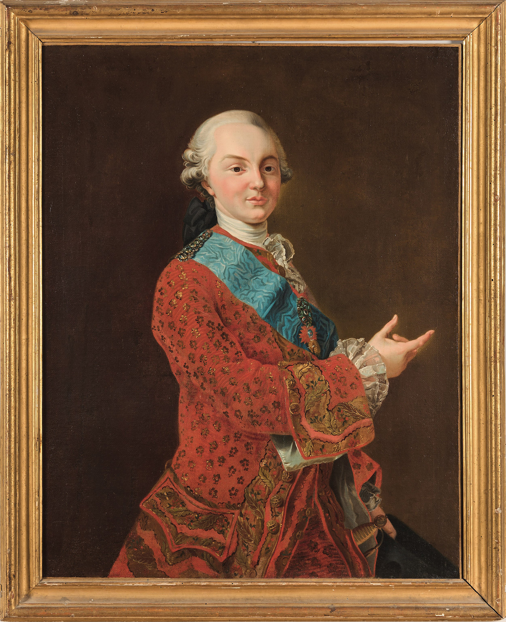 Scuola francese del XVIII secolo, Ritratto di gentiluomo in giubba rossa