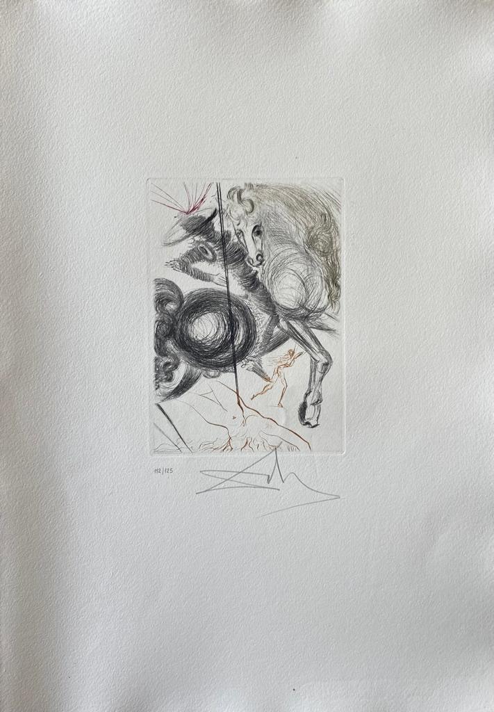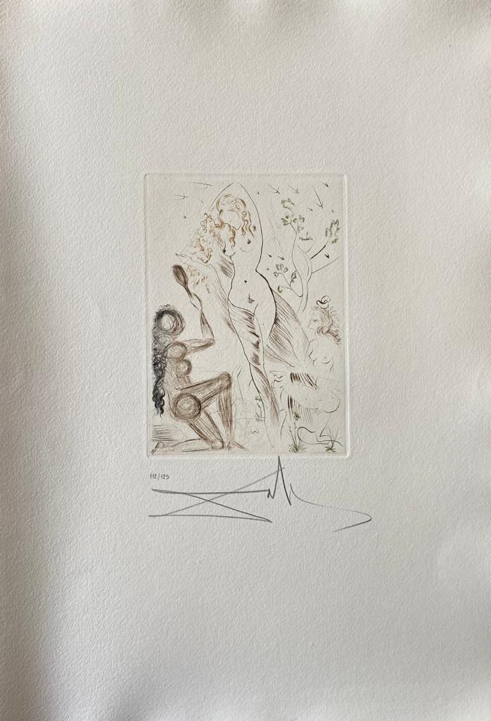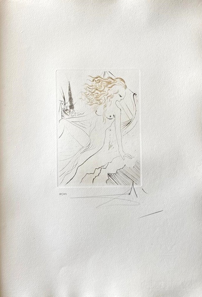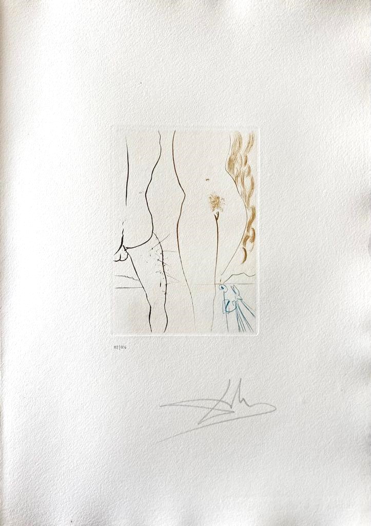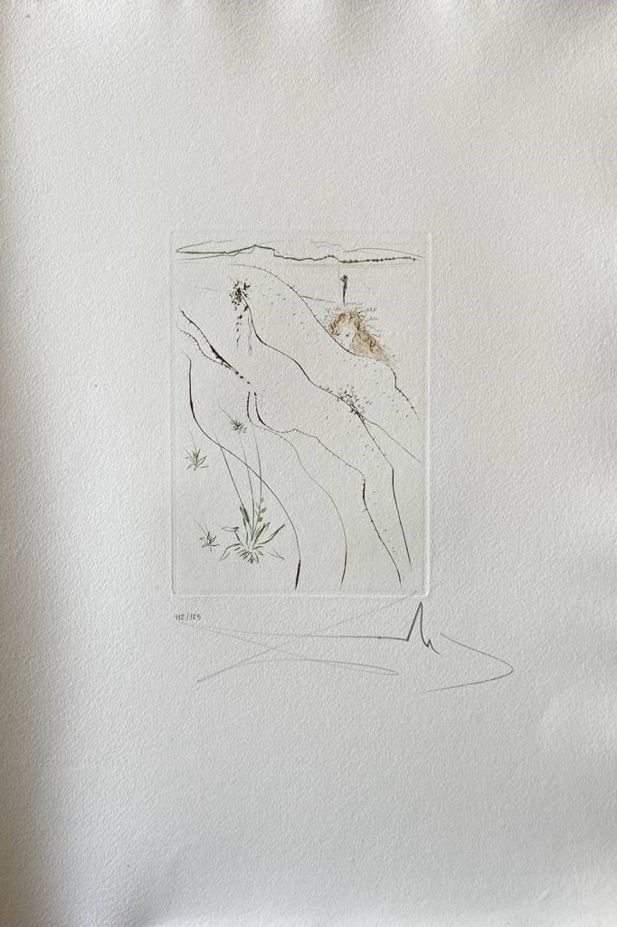 Novelle del Boccaccio relative a 10 giornate, 10 tavole eseguite a puntasecca e stampate a colori, ciascuna numerata e firmata a matita dall’artista e protette da foglio trasparente, testo a fogli sciolti, astuccio editoriale in tela color rubino