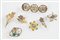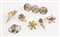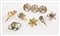 Lotto composto da sette spille con motivi floreali in filigrana d'argento dorata.