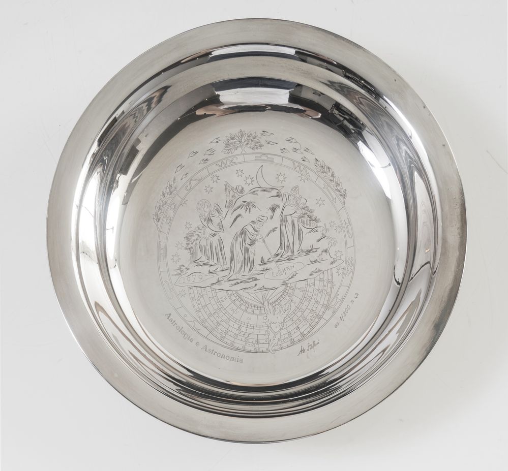 ALESSANDRO STEFANI, Bologna, XX secolo. "Astrologia e Astronomia", 1979. Fondina in argento 800.