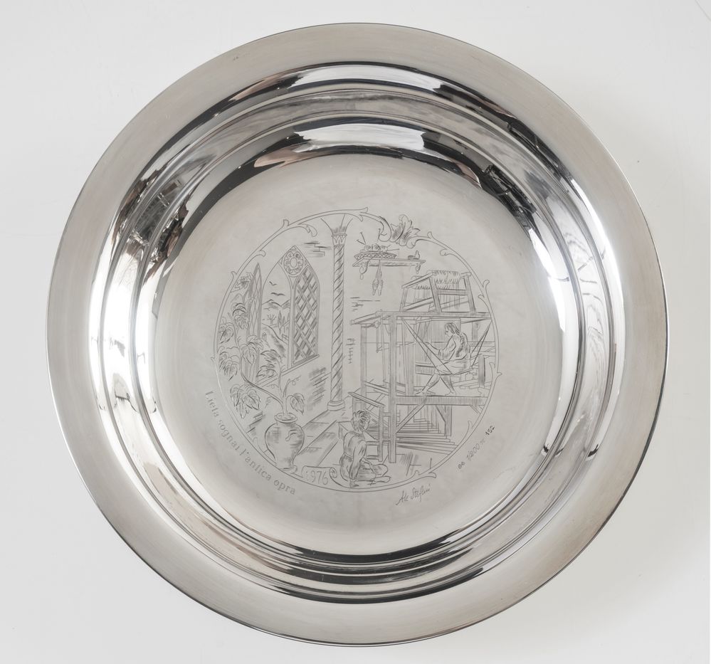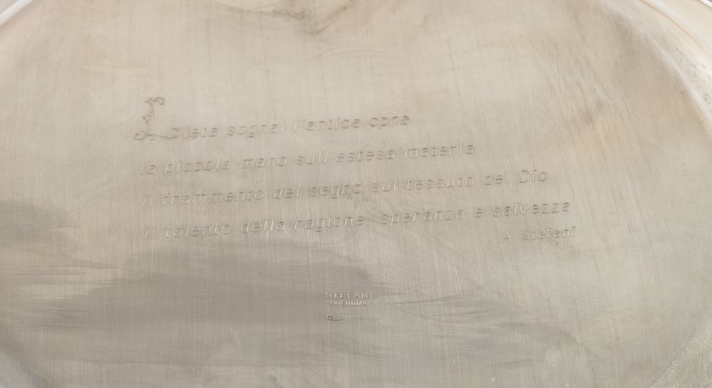 Sul piatto reca iscrizioni Ale Stefani, Es 1/200, n. 152. Al retro reca punzoni: Stefani, Bologna, 800 e losanga locativa 9BO. Al retro reca iscrizione.
