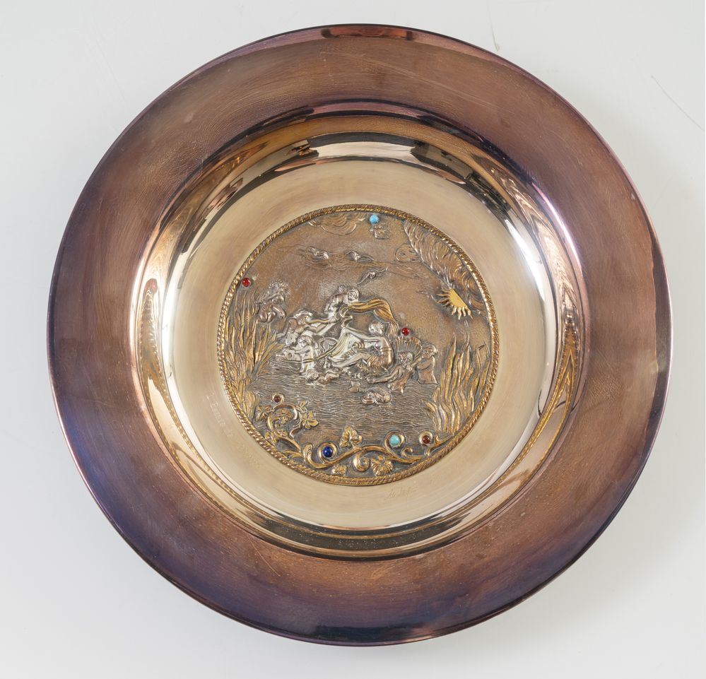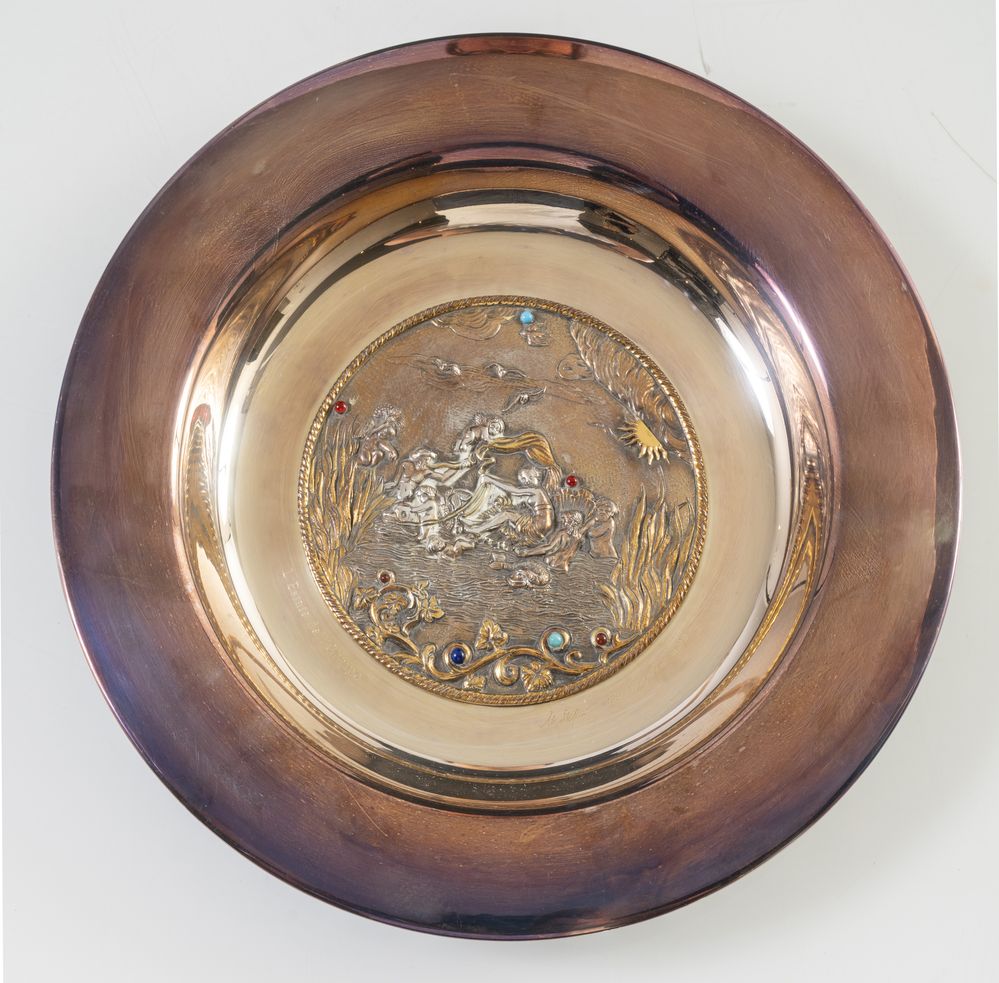 ALESSANDRO STEFANI, Bologna, XX secolo. “L’Estate dell’Olimpo". Fondina in argento 800.