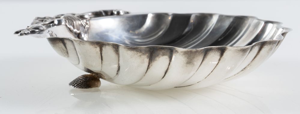 Argenteria Stefani, Bologna, prima del 1968. Svuotatasche a guisa di conchiglia in argento 800.