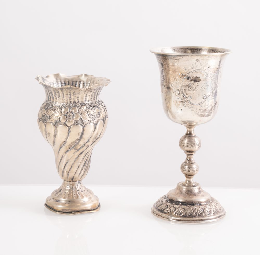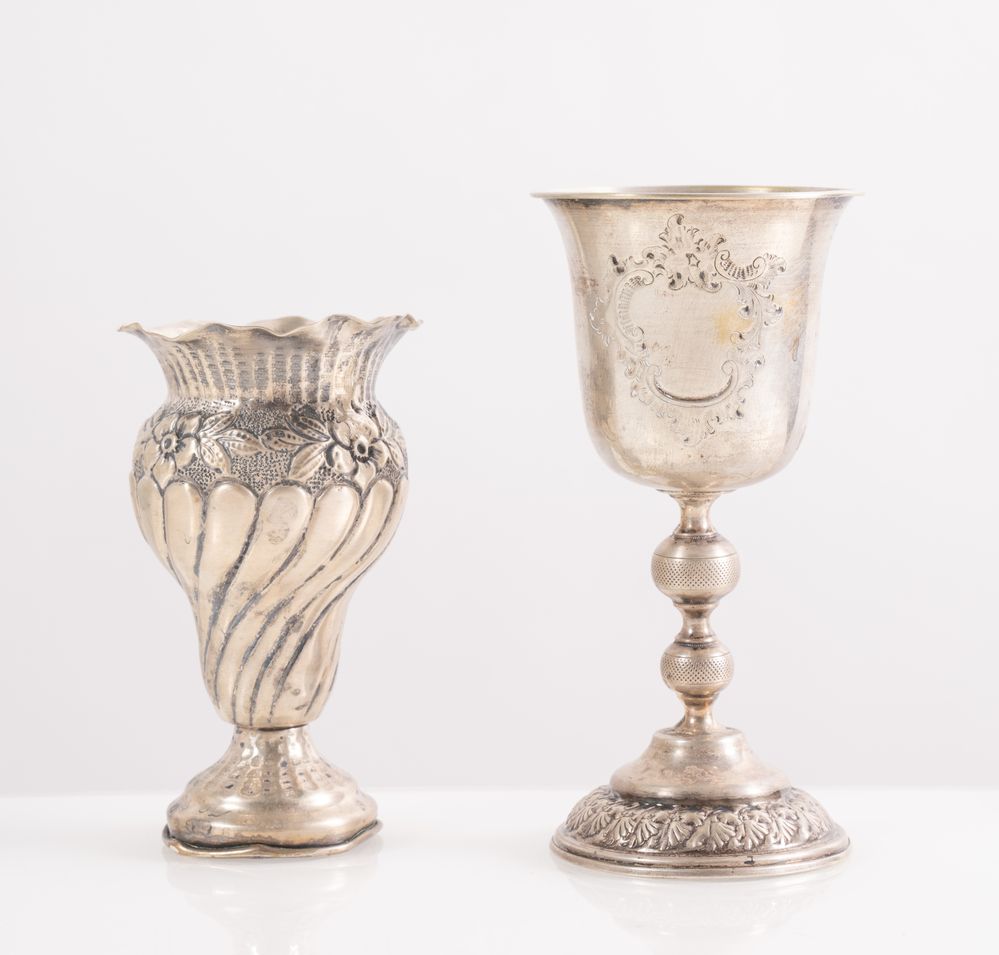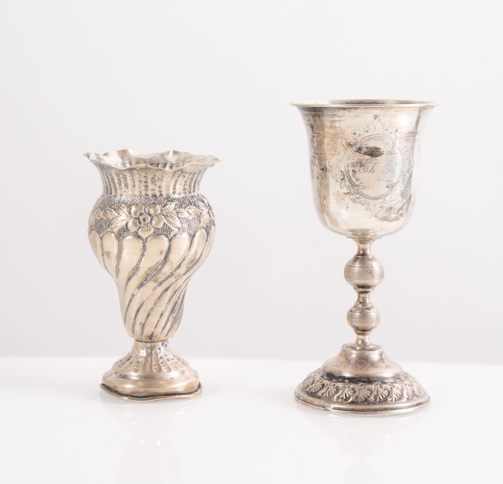 Lotto composto da piccolo calice e piccolo vaso in argento.