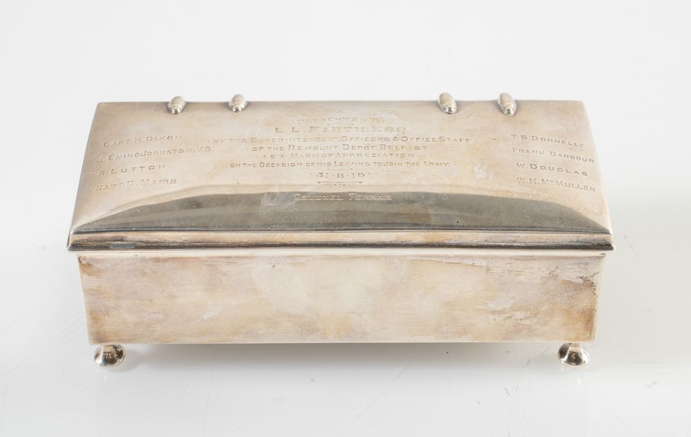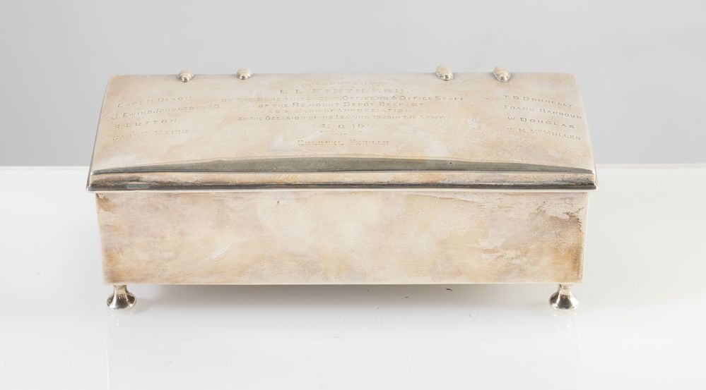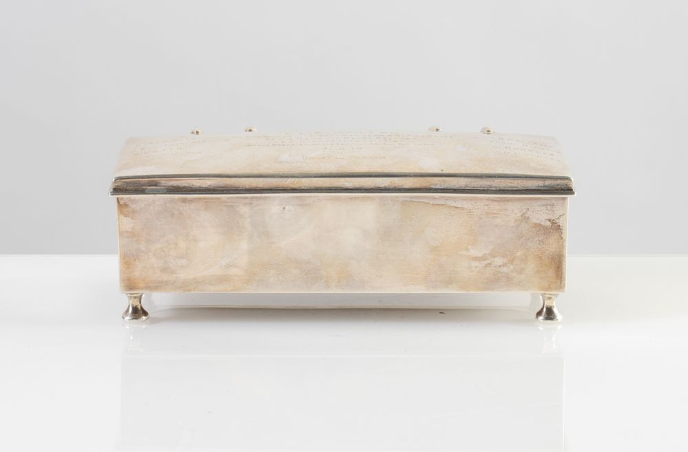 Sharman D Neill, Dublino, 1915-1916. Scatola in argento 925, con fondo e interno in legno.