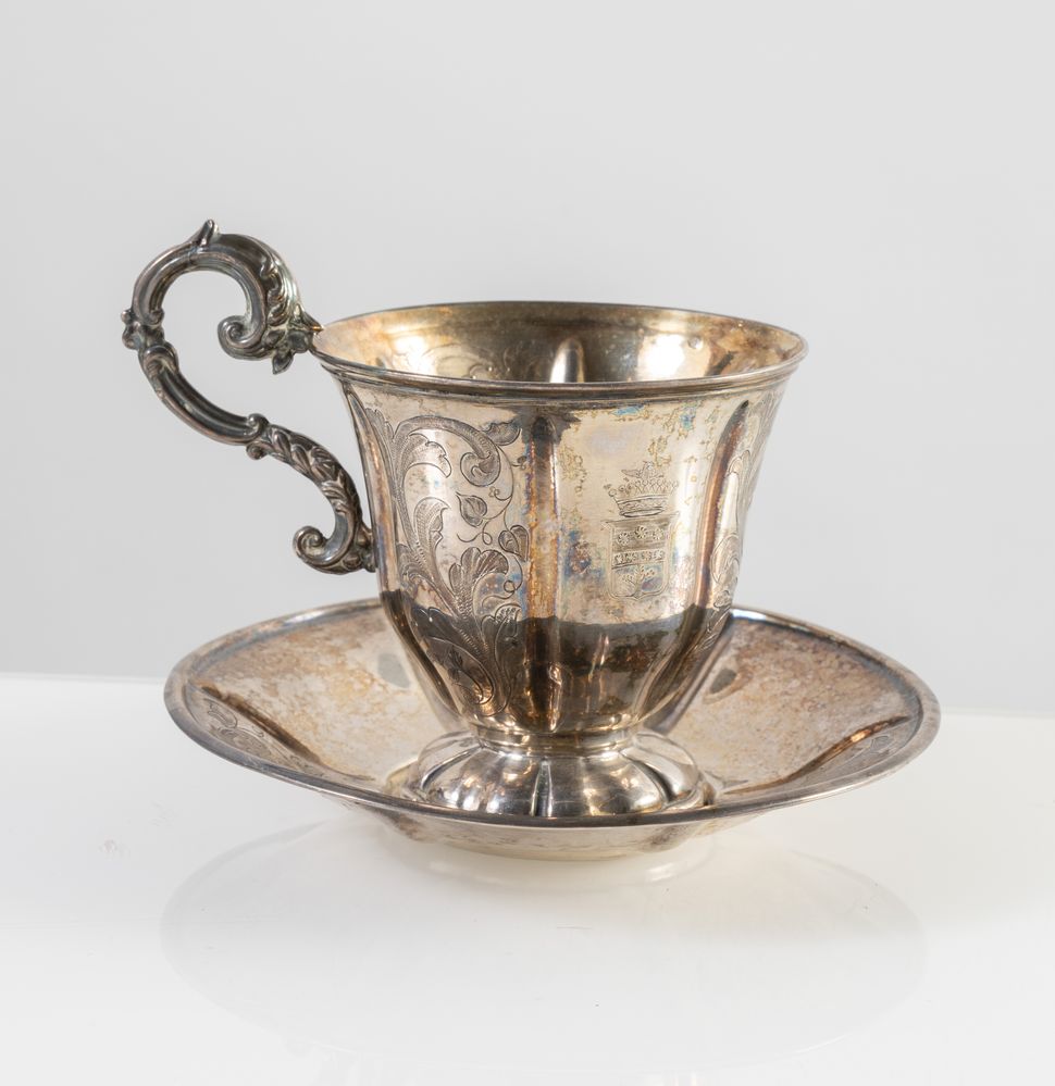 Tazzina: cm 11,5x9,5x13 ; piattino: cm 2,5x diametro 15