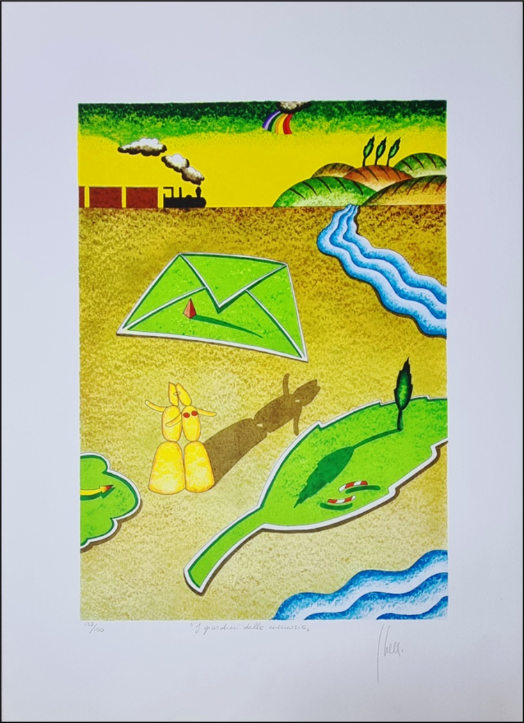 GHELLI GIULIANO Firenze 1944 - 2014 "I giardini della memoria" Serigrafia su cartoncino cm 50x70. Firmata sul fronte in basso a destra, intitolata al centro e numerata a sinistra.