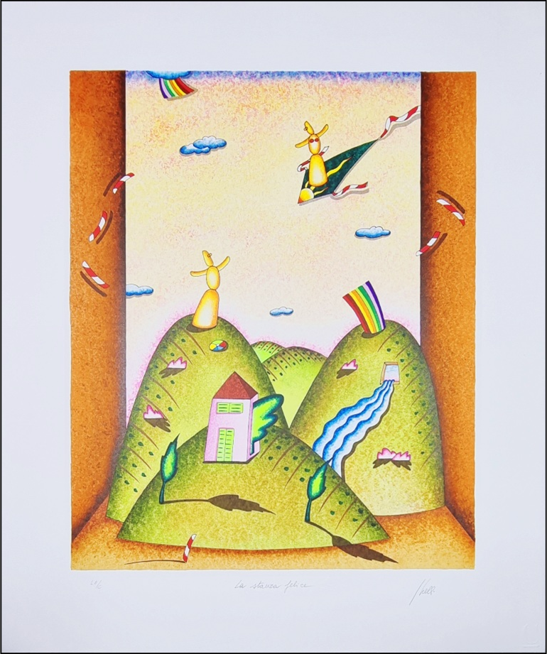 GHELLI GIULIANO Firenze 1944 - 2014 "La stanza felice" Serigrafia su cartoncino cm 50x60. Firmata sul fronte in basso a destra, intitolata al centro e numerata a sinistra.