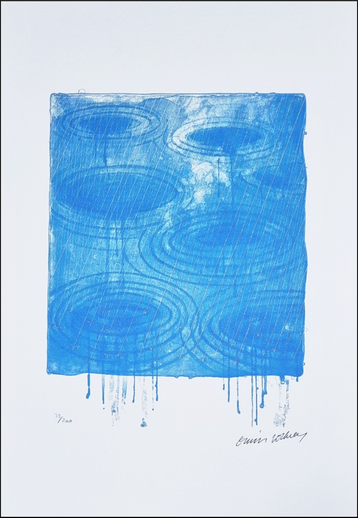 HOCKNEY DAVID Regno Unito 1937 "Senza titolo" Litografia offset su carta Fabriano Cotton Privilege cm 35x50, del 1990/2000. Firma in stampa sul fronte in basso a destra, tiratura 33/200 a sinistra. Timbro a secco a cura della S.P.A.D.E.M. Paris. Certificato di autenticità a cura della Oro Cartier SpA.