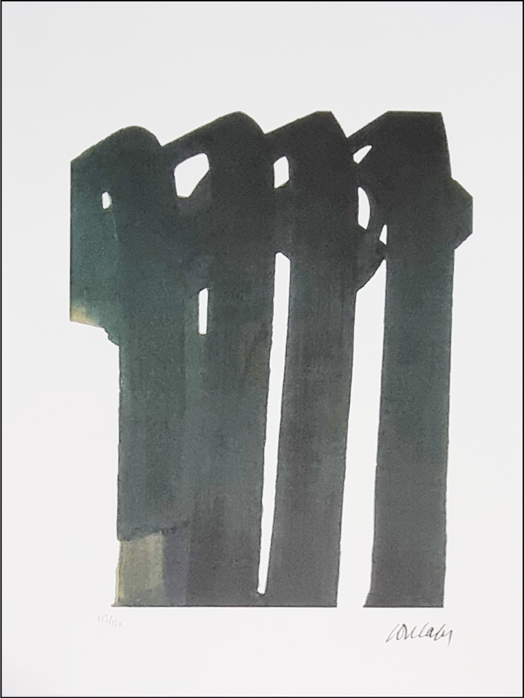 SOULAGES PIERRE Rodez (Francia) 1919 - 2022 "Senza titolo" Stampa firmata in lastra su carta fine art gr. 300, cm 28x38. Firma in stampa e timbro a secco sul fronte in basso a destra, numerazione a matita 113/150 a sinistra. Certificato.