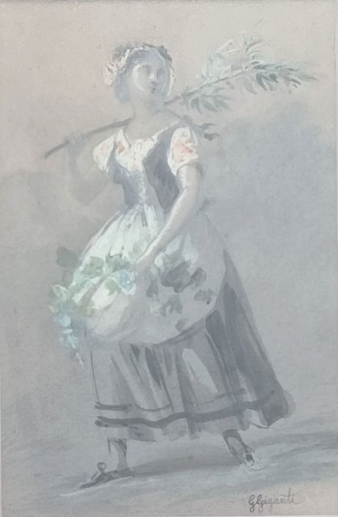 GIGANTE GIACINTO Napoli 1806 - 1876 "Senza titolo" Disegno e acquerello su cartoncino cm 10x15. Firmato sul fronte in basso a destra.