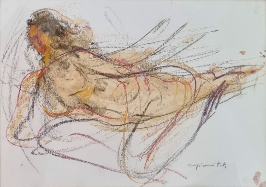 TESTA GIANNI Roma 1936 "Composizione" Tecnica mista e colori su cartoncino cm 35x59. Firmato sul fronte in basso a destra. Sul retro certificato di autenticità e garanzia a cura della Galleria La Sfinge.