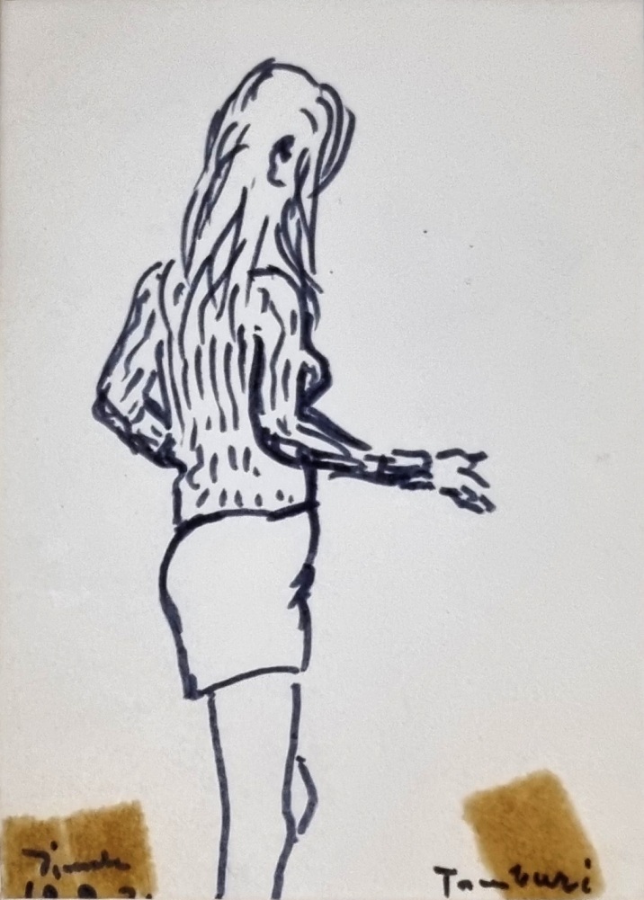 TAMBURI ORFEO Jesi 1910 - Parigi 1994 "Titolo illeggibile" Pennarello su cartoncino, corredato di passepartout, cm 10x13 del 1971. Firmato sul fronte in basso a destra, intitolato e datato a sinistra. Autentica su foto a cura del maestro.