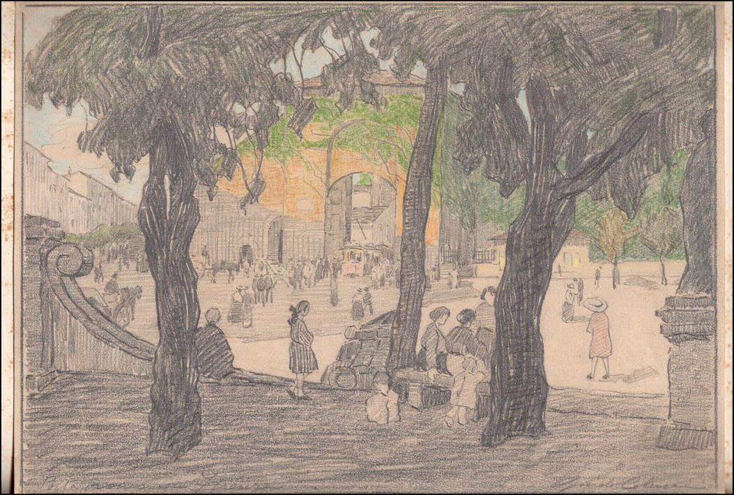 COLUCCI GUIDO Napoli 1877 - Roma 1949 "Porta romana - Firenze" Pastelli colorati su carta cm 31x22. Firmato sul fronte in basso a destra, situato a sinistra.