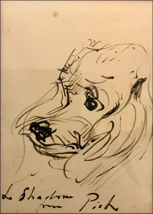 ANNIGONI PIETRO Milano 1910 - Firenze 1988 "Cagnolino" Pennarello nero su carta cm 17,5x24 del 1958. Firmato e dedicato sul fronte in basso.